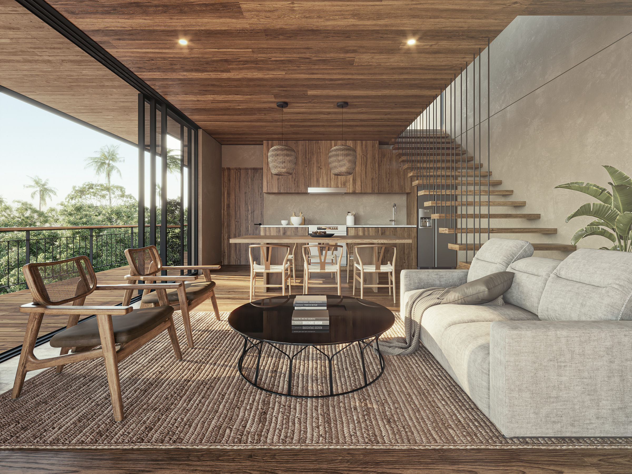 Wir bieten außergewöhnliche Wohnungen in einem Luxuskomplex in einem der begehrtesten Orte Mexikos – Tulum, Quintana Roo. Es ist ein Ort, an dem natürliche Schönheit, Maya-Erbe und moderner Luxus zusammentreffen, um den perfekten Ort zum Leben zu schaffen. Merkmale der Immobilie: – Lofts und Wohnungen mit 1, 2 oder 3 Schlafzimmern. – Hochwertige Ausstattungen, die Ästhetik, Funktionalität und Eleganz verbinden. – Natürliche Materialien aus der Region, die die Verbindung mit der Umgebung betonen. – Räume, die auf Entspannung und Komfort ausgelegt sind.