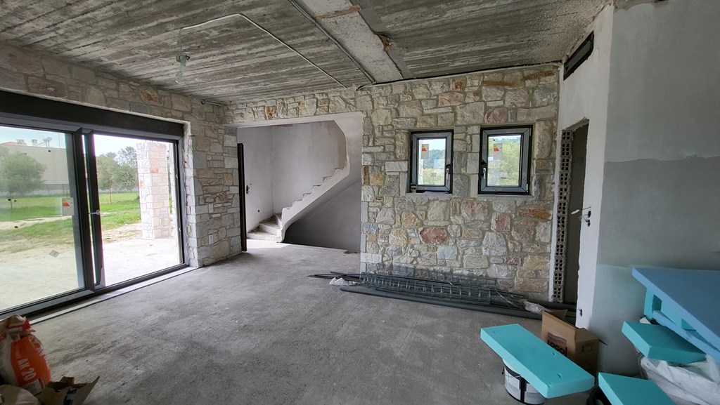 Zu verkaufen im Bau 3-stöckiges Haus von 150 Quadratmetern in Kassandra, Chalkidiki. Das Halbuntergeschoss besteht aus 2 Schlafzimmern, einer Toilette mit Dusche, einem Abstellraum. Das Erdgeschoss besteht aus Wohnzimmer mit Küche, ein Badezimmer. Der 1. Stock besteht aus 2 Schlafzimmern und einem Badezimmer. Es gibt: Sonnenkollektoren für Warmwasser, Klimaanlage, Markisen, Heizung, Grillplatz. Extras, die im Preis der Immobilie enthalten sind: Parkplatz. Das Anwesen bietet einen privaten Swimmingpool.