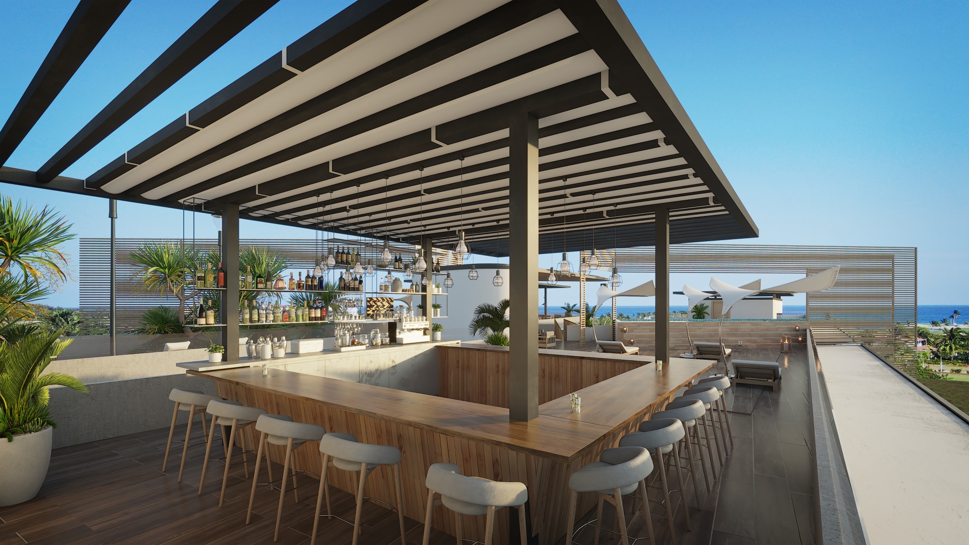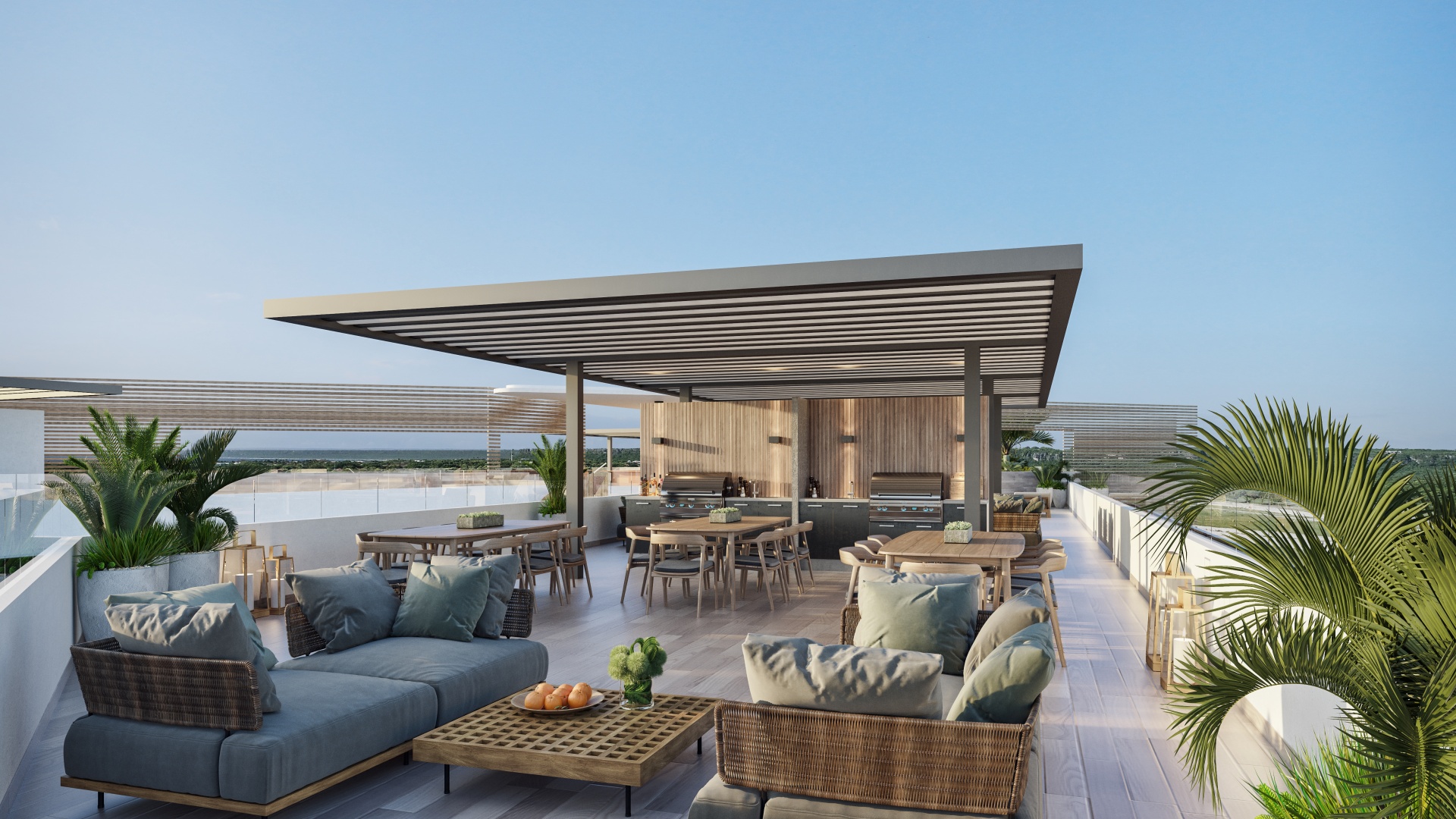 Das Projekt bietet erstklassige Annehmlichkeiten, die das tägliche Leben bereichern. Die Bewohner kommen in den Genuss eines atemberaubenden Dachgartens mit BBQ, Sky Pool Bar, Fitnessstudios im Innen- und Außenbereich mit Meerblick sowie eines voll ausgestatteten Wellnessbereichs mit Yogadeck, Meditationsgarten, Massageraum und Ruhezonen. All dies wird durch einen 24/7-Sicherheitsdienst, eine Lobby und einen Privatparkplatz ergänzt.