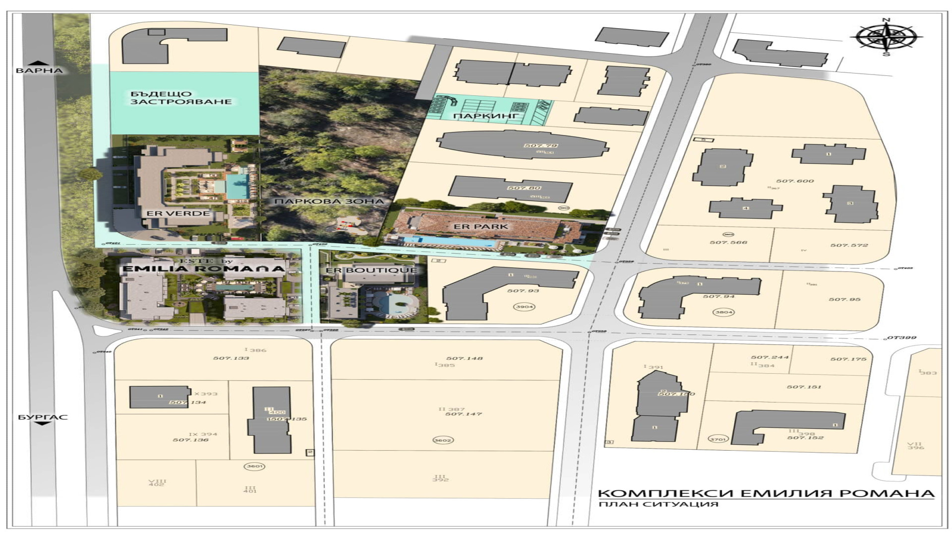 Das Grundstück, auf dem ESTE by Emilia Romana gebaut wird, befindet sich in unmittelbarer Nähe der bereits fertiggestellten Projekte PARK, BOUTIQUE und VERDE. Die vier Komplexe bilden ein einheitliches Produkt, das seinen Besitzern und Besuchern vier thematische Schwimmbäder, eine üppige Vegetation, Restaurants, unter- und oberirdische Parkplätze, Ladestationen für Elektroautos, einen geschützten Bereich, ein großes Sportzentrum, eine Sauna und Kinderspielplätze bietet.