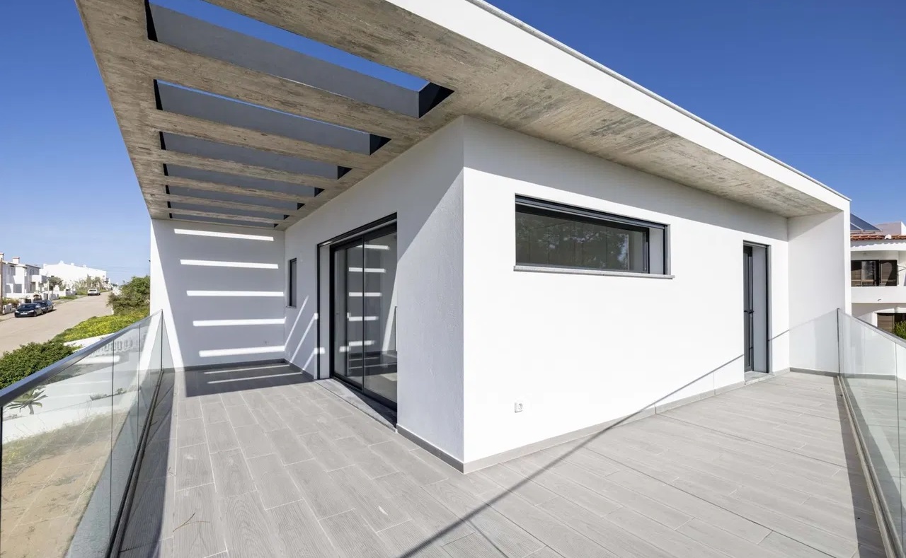 NEUE VILLA IN NÄHE DES STRANDES, ESPARTAL, ALJEZUR Zeitgenössische Design-Villa in bester Lage im Naturpark Südwest-Alentejo und Vicentiner Küste in Portugal. Die Immobilie hat eine bebaute Fläche von 247 m² auf einem Grundstück von 495 m². Sie verfügt über 4 Schlafzimmer, alle mit eigenem Bad, einen integrierten Wohn- und Essbereich, eine Küche und einen Balkon mit Meerblick, sowie einen Swimmingpool und eine Garage. Hauptmerkmale: Gesamtfläche: 247 m² auf einem Grundstück von 495 m². 4 Schlafzimmer, alle mit eigenem Bad. Außenanlagen: Schwimmbad, Grill und Außendusche. Lage: In der Urbanisation Espartal, in der Nähe der Strände von Monte Clérigo und Amoreira. Extras: Sonnenkollektoren für die Warmwasserbereitung, Klimaanlage, Garage mit elektrischem Tor. Erdgeschoss: Geräumige Eingangshalle, die mit dem offenen Wohn-/Essbereich verbunden ist. Zwei Schlafzimmer mit eigenem Bad, eines davon mit direktem Zugang zum Pool. Obergeschoss: Zwei weitere Schlafzimmer, beide mit eigenem Bad und Zugang zu Terrassen mit Panoramablick auf das Meer. Lage: Die Urbanização Espartal ist ideal für Naturliebhaber, da sie in der Nähe der berühmten Strände und Wanderwege des Naturparks liegt. Die wichtigsten Dienstleistungen wie Supermärkte, Geschäfte und ein wöchentlicher Bauernmarkt sind zu Fuß erreichbar. Auch die internationale Schule und der Flughafen Faro sind nicht weit entfernt. Die Immobilie bietet aufgrund ihrer privilegierten Lage ein ausgezeichnetes Investitionspotenzial, sei es für einen dauerhaften Wohnsitz oder für die saisonale Vermietung. Eine Besichtigung ist für alle, die ein ruhiges Leben in der Natur suchen, sehr empfehlenswert.