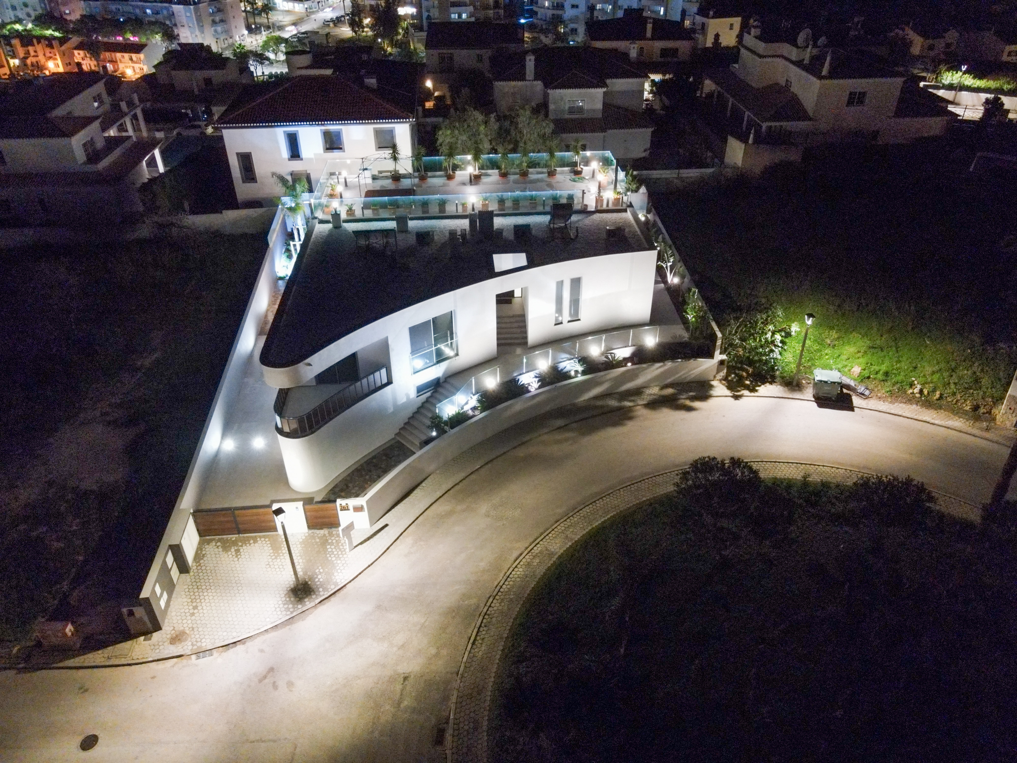 Dach: – Das Ex-Libris dieser Villa ist auf dem Dach mit einer 110 m2 Dachterrasse, um den herrlichen Blick auf die Stadt Lagos, einschließlich Meia Praia, Praia do Forte, Praia da Batata, Praia dos estudantes, Praia do Pinhão und Praia da Dona Ana zu genießen, und von hier aus können Sie einen Drink oder einen Snack mit Freunden mit einem herrlichen Blick auf das Meer genießen. Die Dachterrasse ist mit einer Insel, einem Tisch, Stühlen, Pflanzenkübeln rund um die gesamte Struktur und einer Dusche ausgestattet. Die Villa ist innen und außen mit prächtigen Lichtern ausgestattet, auch in den Fenstern, an allen Eingängen, die alle Wege beleuchten, und der Eigentümer kann zwischen allen vorhandenen Farben wählen oder sie automatisch und abwechselnd durch das System wechseln lassen.