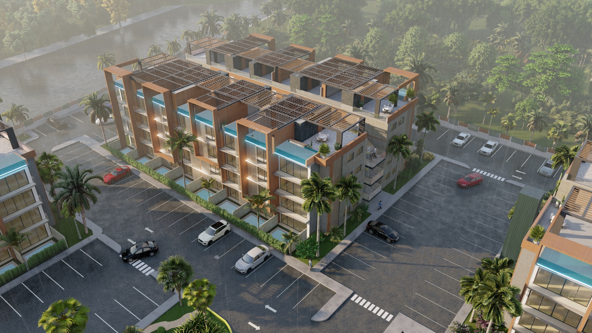 Das Projekt basiert auf einem resortähnlichen Konzept, das die wichtigsten Annehmlichkeiten des Lebensstils mit elegantem Design verbindet. Ein atemberaubender zentraler Pool im Stil eines Hotels, eine üppige Landschaftsgestaltung und elegante Gemeinschaftsräume sind nur einige der Einrichtungen, die den Bewohnern und Gästen zur Verfügung stehen. Die Gesamtatmosphäre fördert Entspannung, Freizeit und ein echtes karibisches Lebensgefühl.