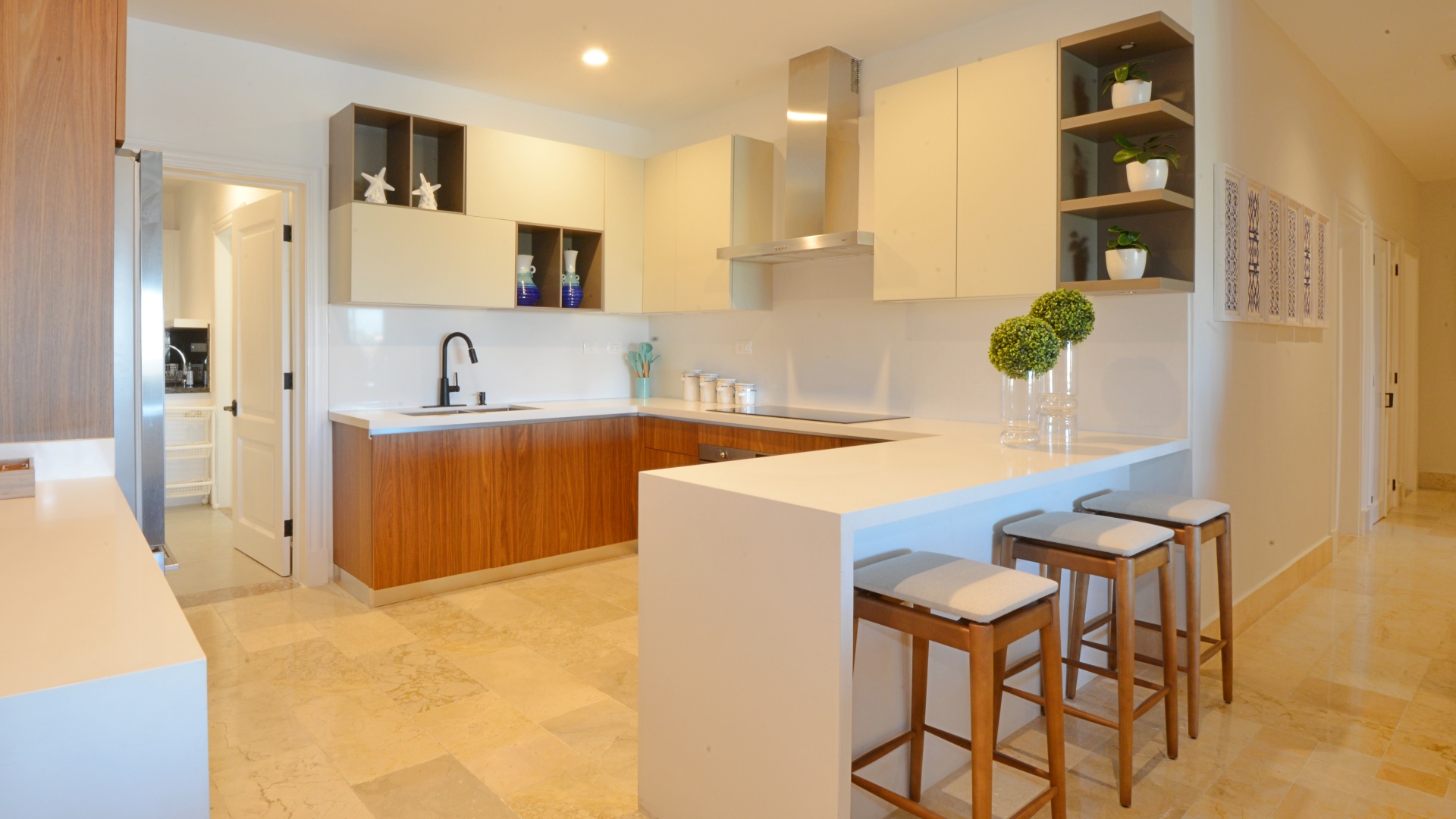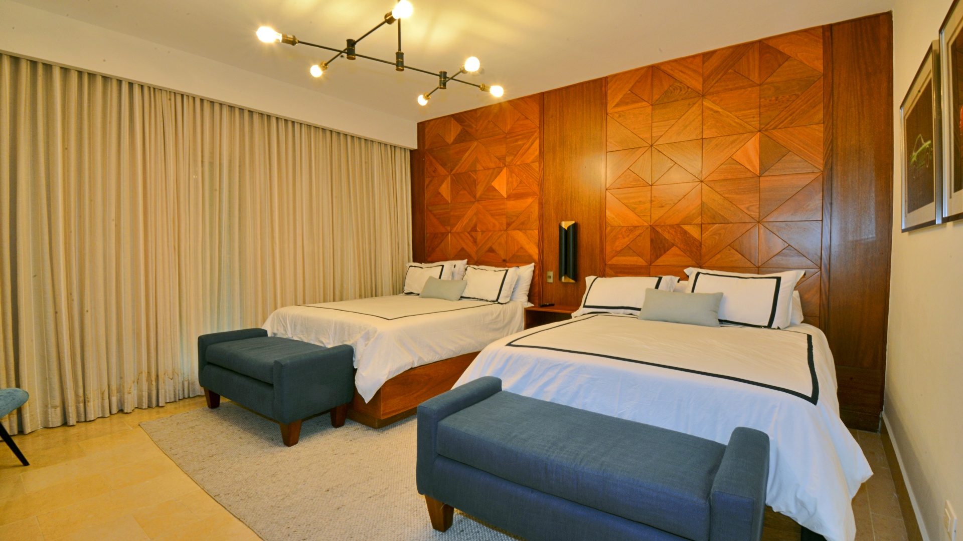 Die Wohnung befindet sich auf der dritten Etage und bietet mit 196 Quadratmetern Wohnfläche reichlich Platz zum Entspannen und Unterhalten. Die Wohnung verfügt außerdem über zwei geräumige Schlafzimmer, jedes mit eigenem Bad, und ein halbes Bad für Gäste.