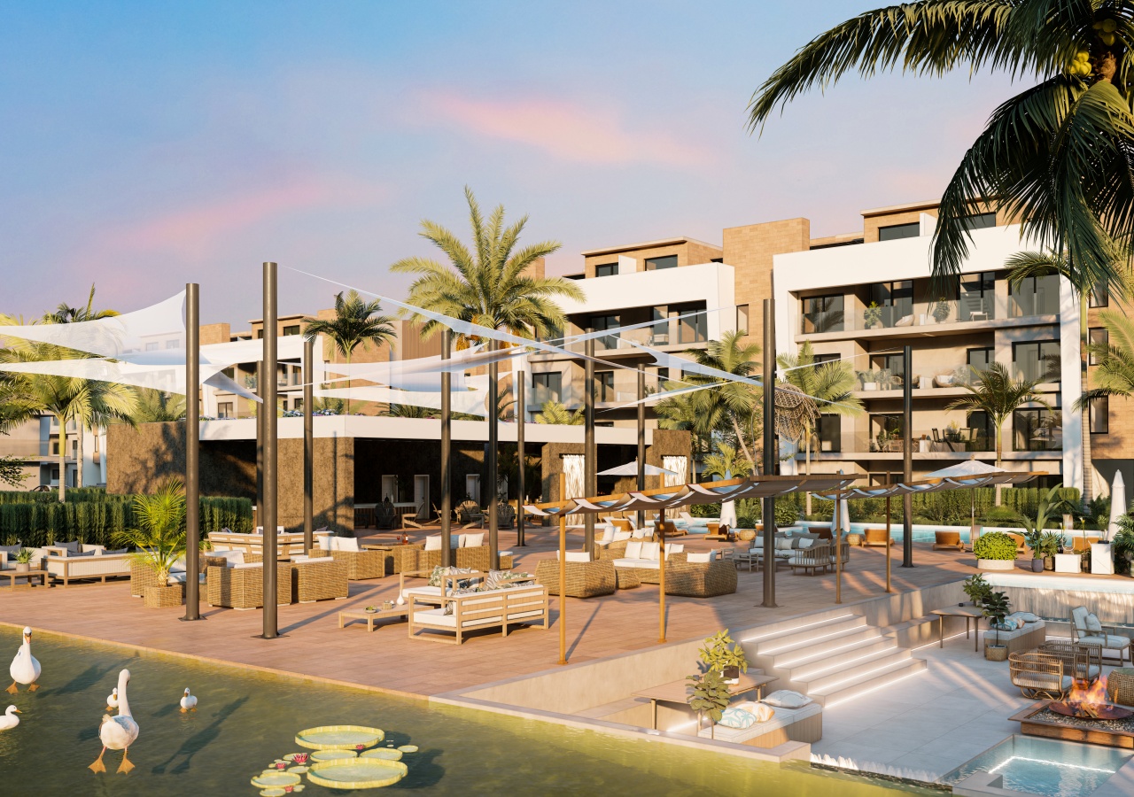 Die moderne Architektur der Anlage fügt sich harmonisch in die umgebende Natur ein und schafft einen Raum voller Licht, frischer Luft und exotischer Vegetation. Die Wohnungen wurden so konzipiert, dass sie ein Höchstmaß an Komfort und Privatsphäre bieten, während die Bewohner gleichzeitig die vielen Annehmlichkeiten genießen können, die das Leben hier wie in einem Luxusresort erscheinen lassen.