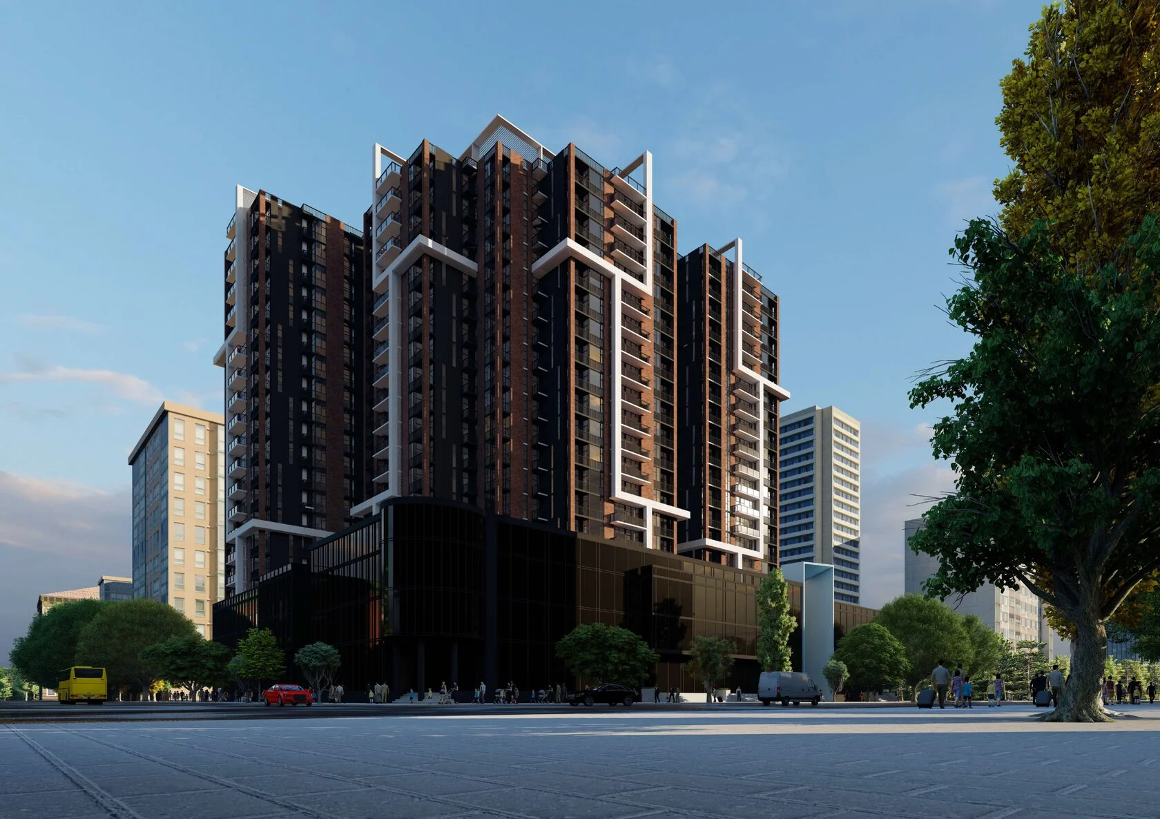 Die Investition besteht aus drei 20-stöckigen Gebäuden, in denen verschiedene Wohnungen verfügbar sind – von kompakten und funktionalen Studios über geräumige Ein- oder Zweizimmerwohnungen bis hin zu größeren Familienwohnungen. Einer der Vorteile des Projekts ist seine Lage im Stadtzentrum, wodurch die Bewohner direkten Zugang zu Geschäften, Restaurants, Cafés und Dienstleistungen haben, und der im Erdgeschoss des Gebäudes befindliche Handels- und Dienstleistungsbereich erhöht den Komfort und die Lebensqualität im Alltag.