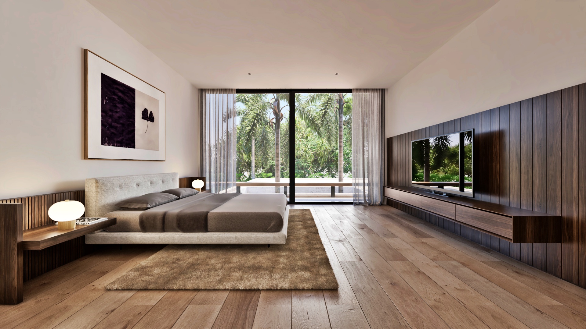 Die Villa verfügt über vier geräumige Schlafzimmer, jedes mit eigenem Bad, die allen Familienmitgliedern und Gästen ein Höchstmaß an Privatsphäre und Komfort bieten. Die Badezimmer sind mit hochwertigen Oberflächen ausgestattet, die Stil und Funktionalität vereinen. Darüber hinaus verfügt die Villa über ein Gäste-WC, das für noch mehr Komfort sorgt.