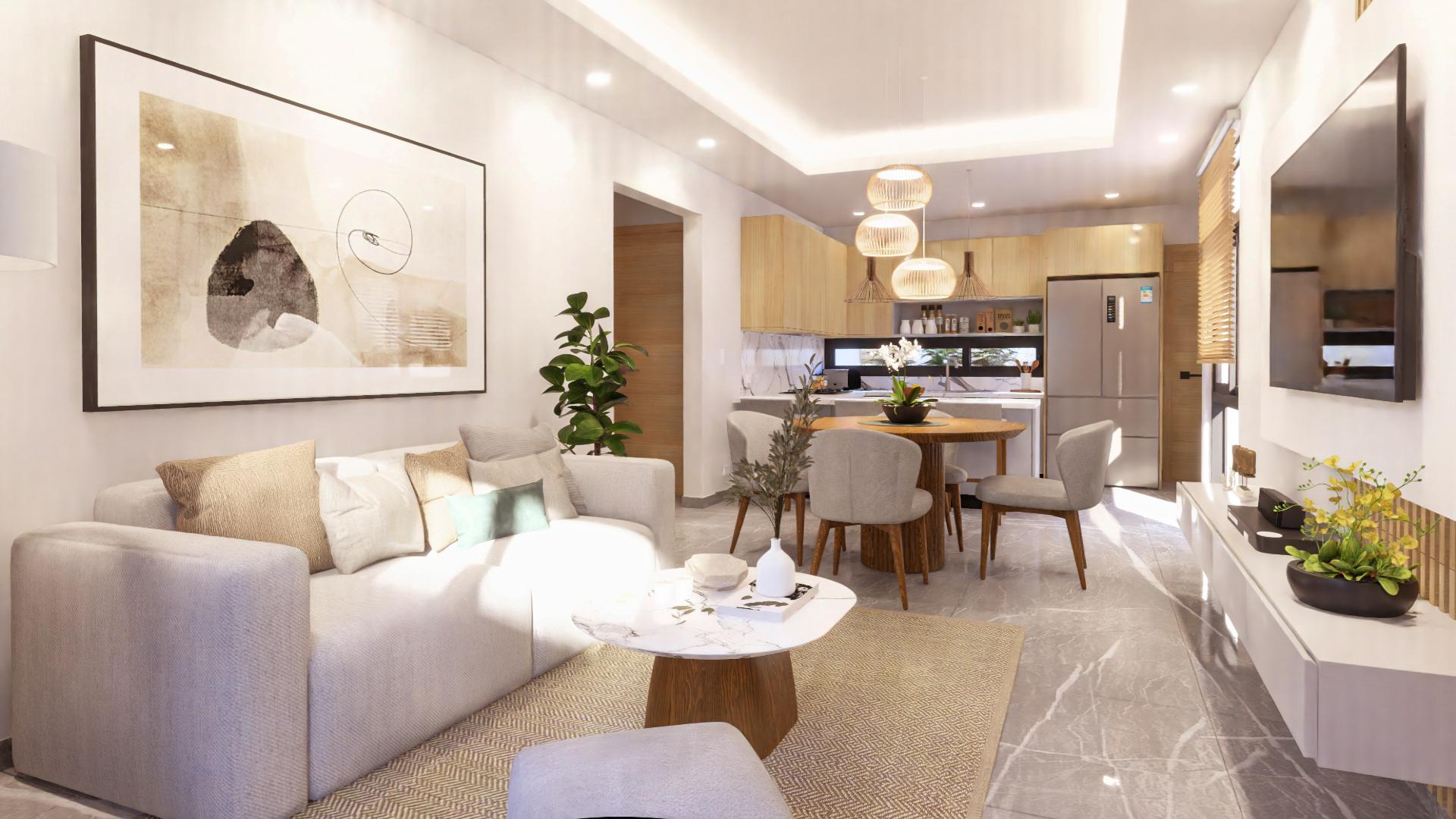 Entdecken Sie eine elegante Kollektion von Apartments mit 2 Schlafzimmern und 2 Bädern in einer privaten Wohnanlage in Punta Cana. Die Wohnungen sind im modernen karibischen Stil gestaltet und verfügen über offene Grundrisse, hochwertige Oberflächen und eine komfortable und dennoch anspruchsvolle Atmosphäre – perfekt für einen entspannten tropischen Lebensstil.