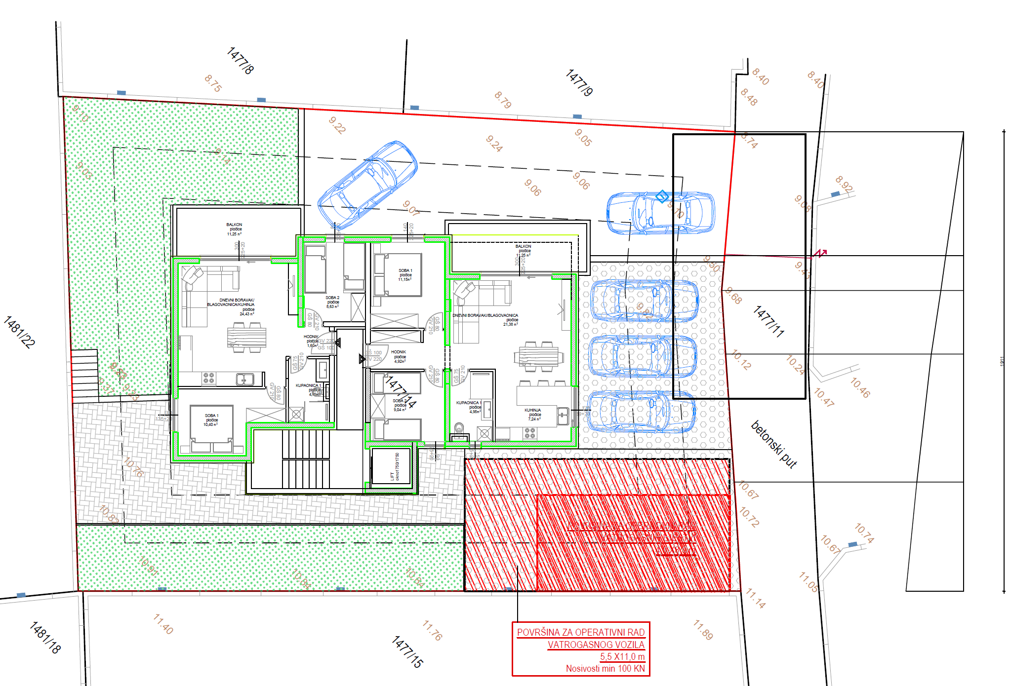 Das Gebäude befindet sich in Okrug Gornji, Ciovo, in der Nähe von Trogir und dem Flughafen, nahe der Hauptpromenade – Ein großer Vorteil sind die 2 Parkplätze, 1 in der Garage und 1 außerhalb.