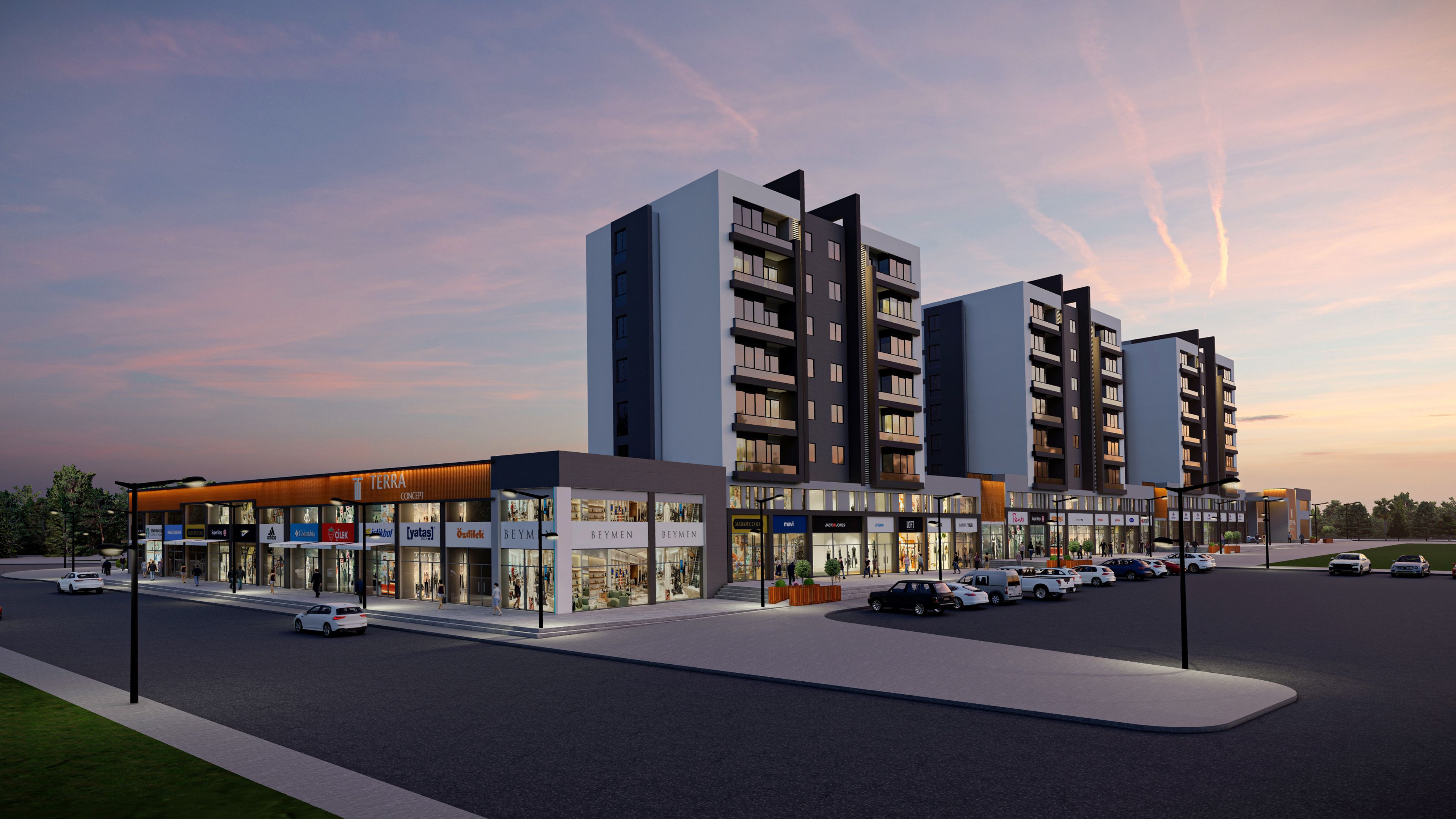Terra Concept ist ein 14.085 m² großes Projekt, das aus 4 Blöcken besteht. Mit seiner Lage und Funktionalität als Mischnutzungsprojekt wurde es so konzipiert, dass es die geografischen und klimatischen Bedingungen optimal nutzt. Durch seine Lage im Stadtteil Kepez hat es das Potenzial, dem kommerziellen Leben der Region Masa Dağı-Göçerler eine neue Richtung zu geben. 72 2+1-Wohnungen, 54 1+1-Wohnungen und 81 Gewerbeeinheiten bietet Terra Concept. Die Geschäftsräume sind wie Straßenboutiquen gestaltet, die einen wichtigen Beitrag zur wirtschaftlichen Entwicklung des Gebiets leisten werden. Es ist eine ausgezeichnete Wahl sowohl zum Wohnen als auch als Investition. EIN ANDERES LEBEN VERBIRGT INNEN… Das Terra Concept ist ein modernes, gemischt genutztes Projekt, in dem die Geschäftsräume eine Schlüsselrolle spielen – 81 Geschäftsräume in Form von Straßenläden. Darüber erheben sich 4 Wohnblöcke. Ausgewählte Annehmlichkeiten: Vollautomatischer Aufzug mit Frequenzsteuerung Eleganter Gebäudeeingang Zentrales Satellitenfernsehsystem Speziell gestaltete Grünflächen Zentralheizung Generatorsystem Tiefgarage Brand- und Sprinkleranlagen Beleuchtung mit Bewegungsmeldern Lüftungsanlage Wasseraufbereitungsanlage Schwimmbad und Planschbecken für Kinder Fitnesscenter und Sauna Spielplatz im Freien 24/7-Überwachung Privater Eingang zur Siedlung mit Sicherheitskabine LEBEN IN EINER FÜR SIE GESCHAFFENEN WELT…. ADRESSE DES GLÜCKS, DES RAUMS UND DER ZUKUNFT… Wohnungseinrichtung In den Wohnräumen von Terra Concept finden Sie eine hohe Verarbeitungsqualität und viele funktionelle Lösungen, die auf Ihre Bedürfnisse zugeschnitten sind. Wir verwenden Materialien von renommierten, bewährten Marken. Die Wohnungen wurden mit Blick auf Ihren Komfort und Ihre Energieeinsparung konzipiert – dank Wärme- und Schalldämmung. Wohnungsgrundrisse: 54 1+1-Wohnungen 72 2+1-Wohnungen Ausgewählte Merkmale der Wohnungen: Wärme- und Schalldämmung Einbruchsichere Eingangstür (Stahl) PVC-Außentischlerei Keramikböden Klimaanlage Multi-Typ oder VRF-System Zentralheizung und Warmwasser Küchen mit erstklassiger Ausstattung Aluminiumgeländer an Treppen und Balkonen Einbauschränke