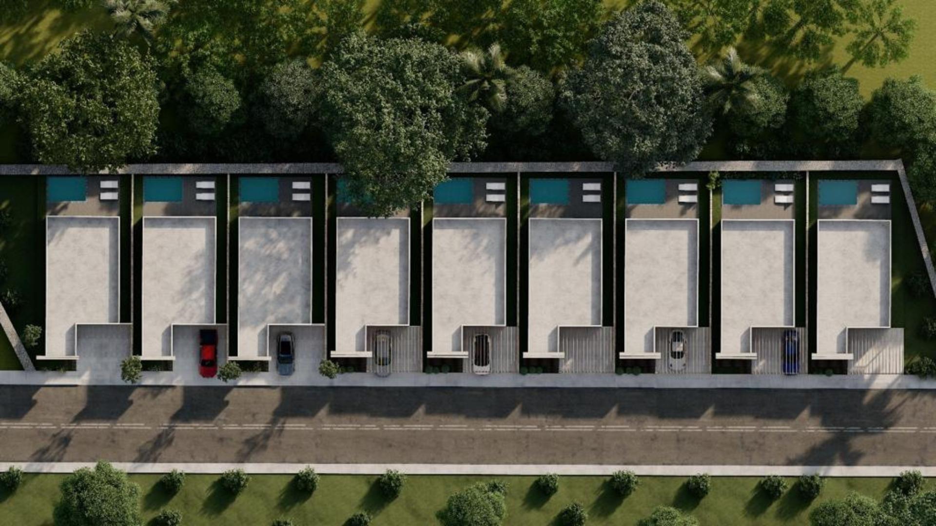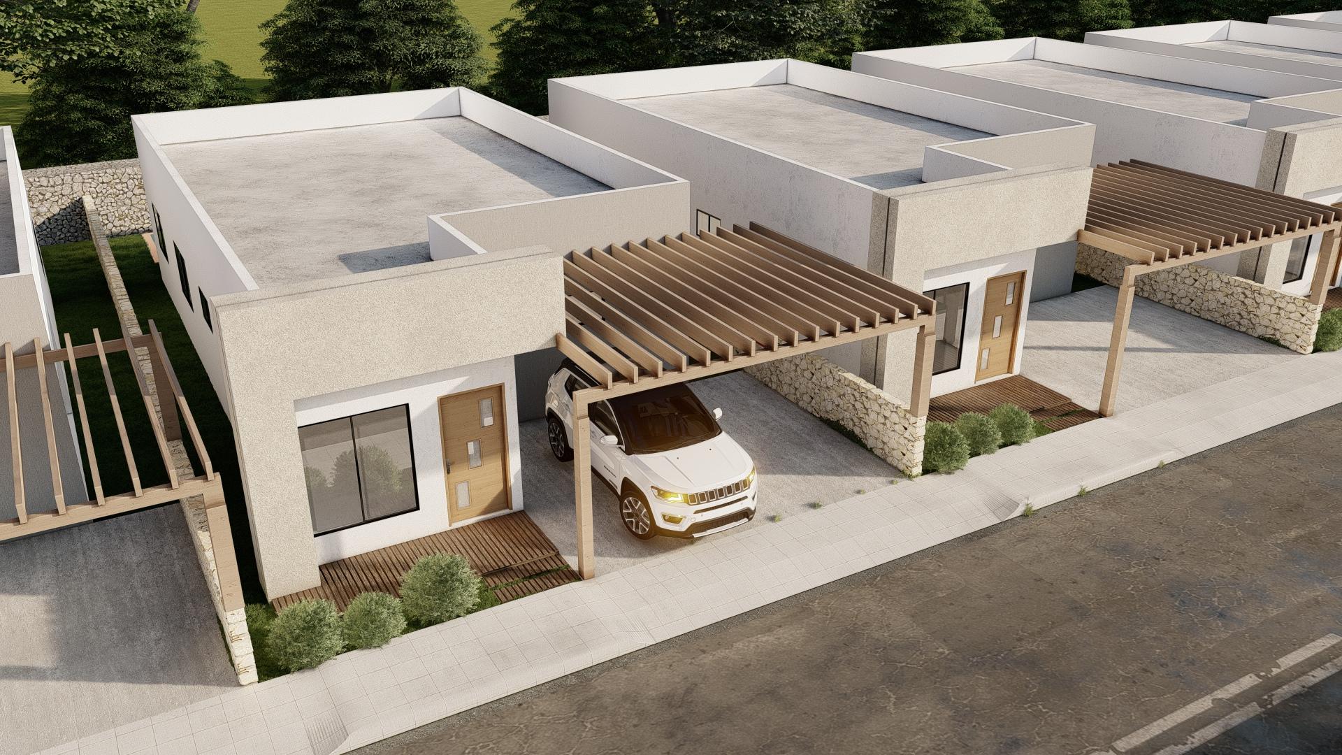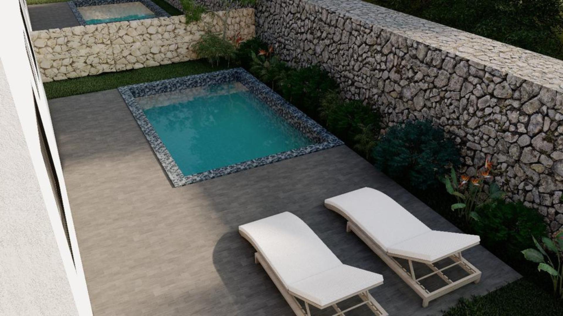 Jedes Haus befindet sich auf einem 250 m² großen Grundstück. Mit 3 Schlafzimmern, 2 Bädern, einer modernen Küche und einem offenen Wohnbereich bieten diese Wohnungen sowohl Stil als auch Funktionalität. Genießen Sie private Annehmlichkeiten wie einen Garten, zwei Parkplätze und einen privaten Pool (2,60 m x 3,50 m), der die perfekte Umgebung für Entspannung und Unterhaltung schafft.