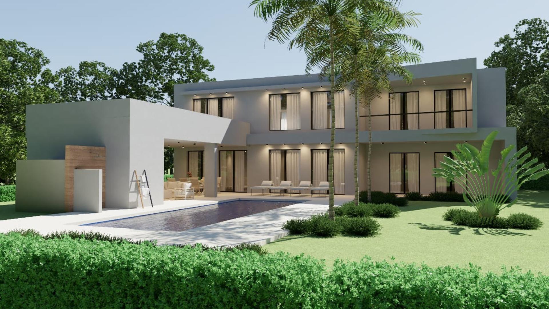 Die Villa verfügt über fünf geräumige Schlafzimmer, jedes mit eigenem Bad, um maximalen Komfort und Privatsphäre zu gewährleisten. Die großzügigen, offen gestalteten Wohn- und Essbereiche gehen nahtlos in die moderne Küche über und schaffen eine einladende Atmosphäre für Gäste. Zu den zusätzlichen Räumen gehören ein Dienstmädchenbereich und ein Abstellraum, die dieses gut durchdachte Haus noch praktischer machen.