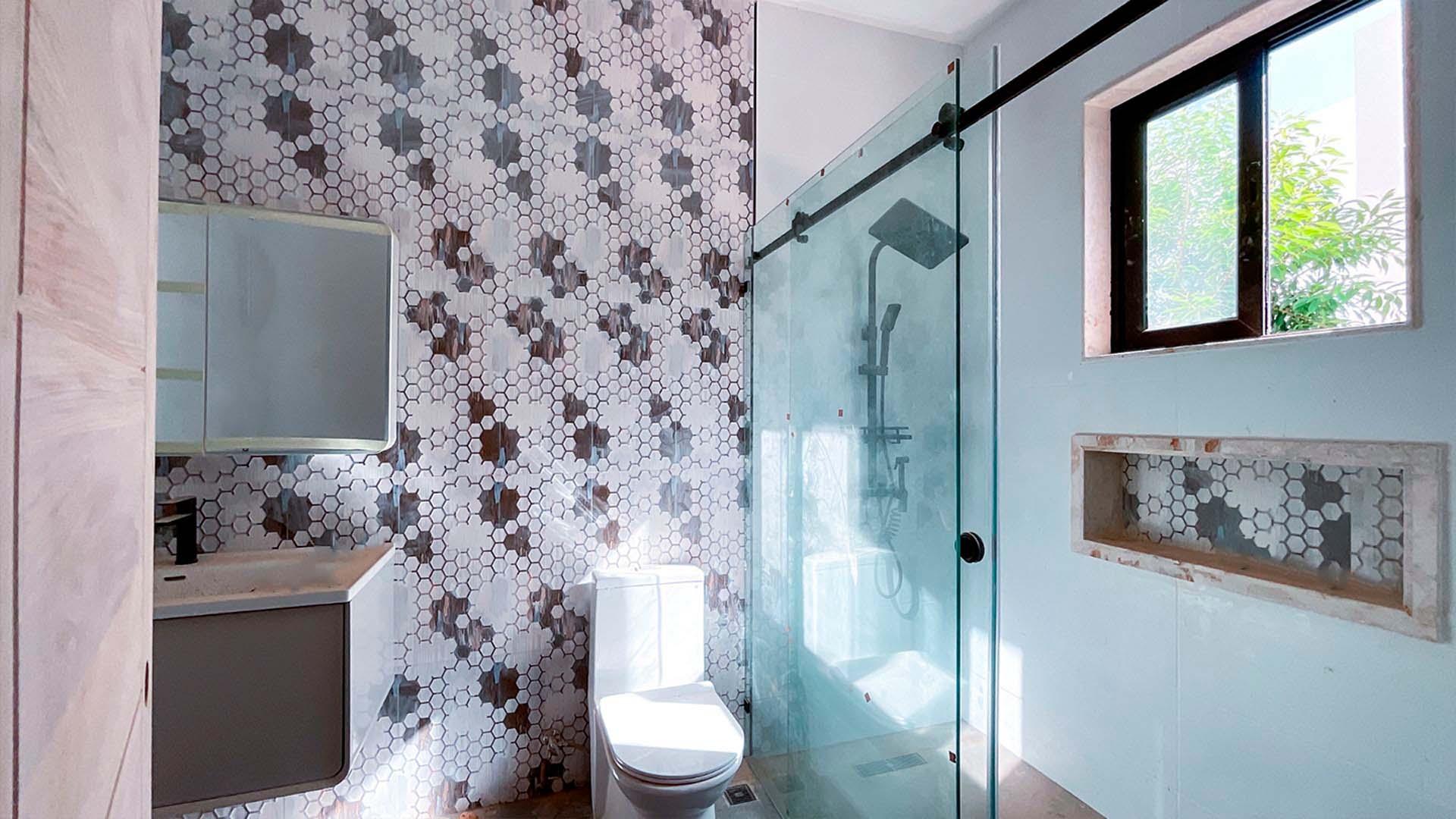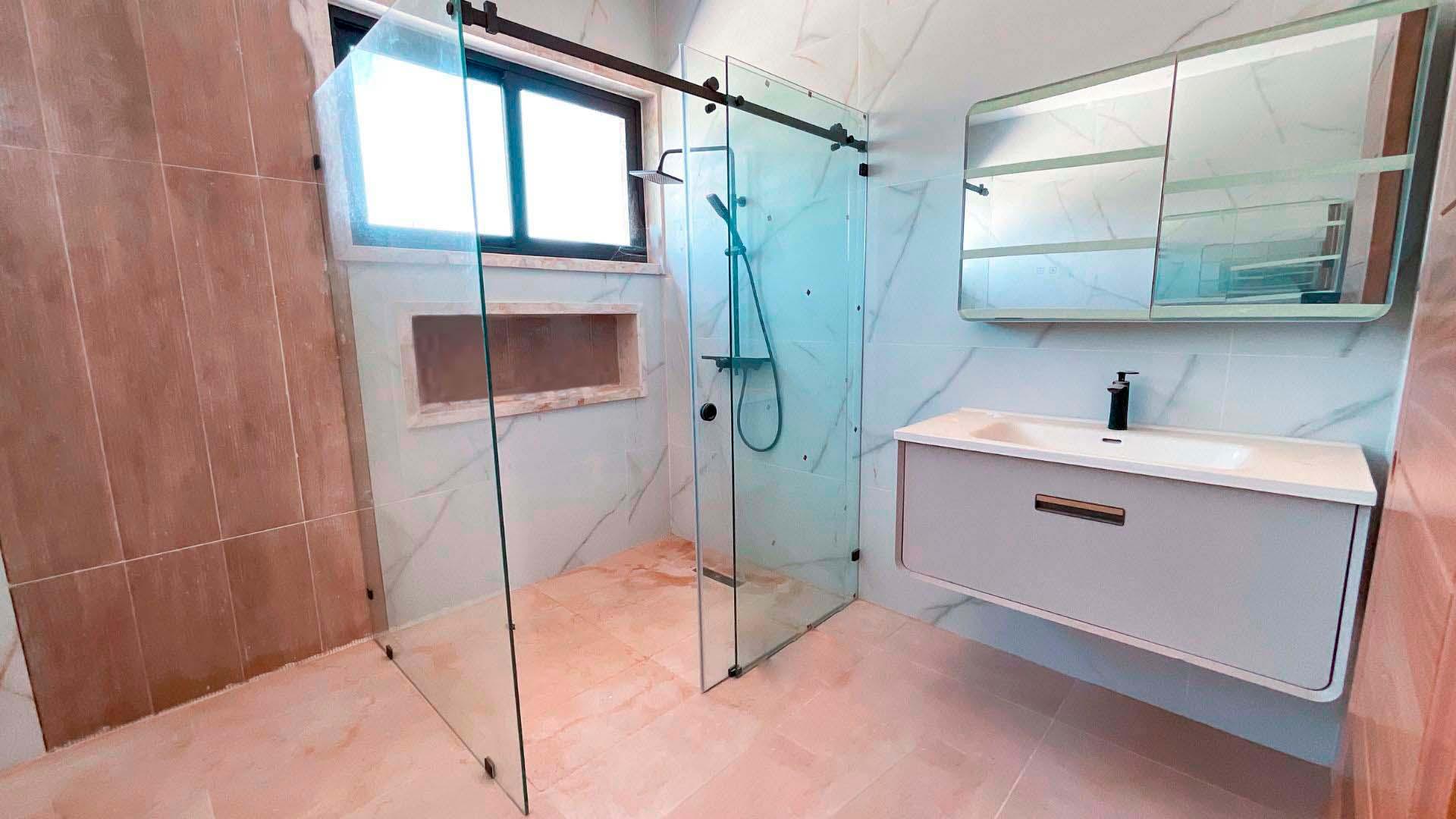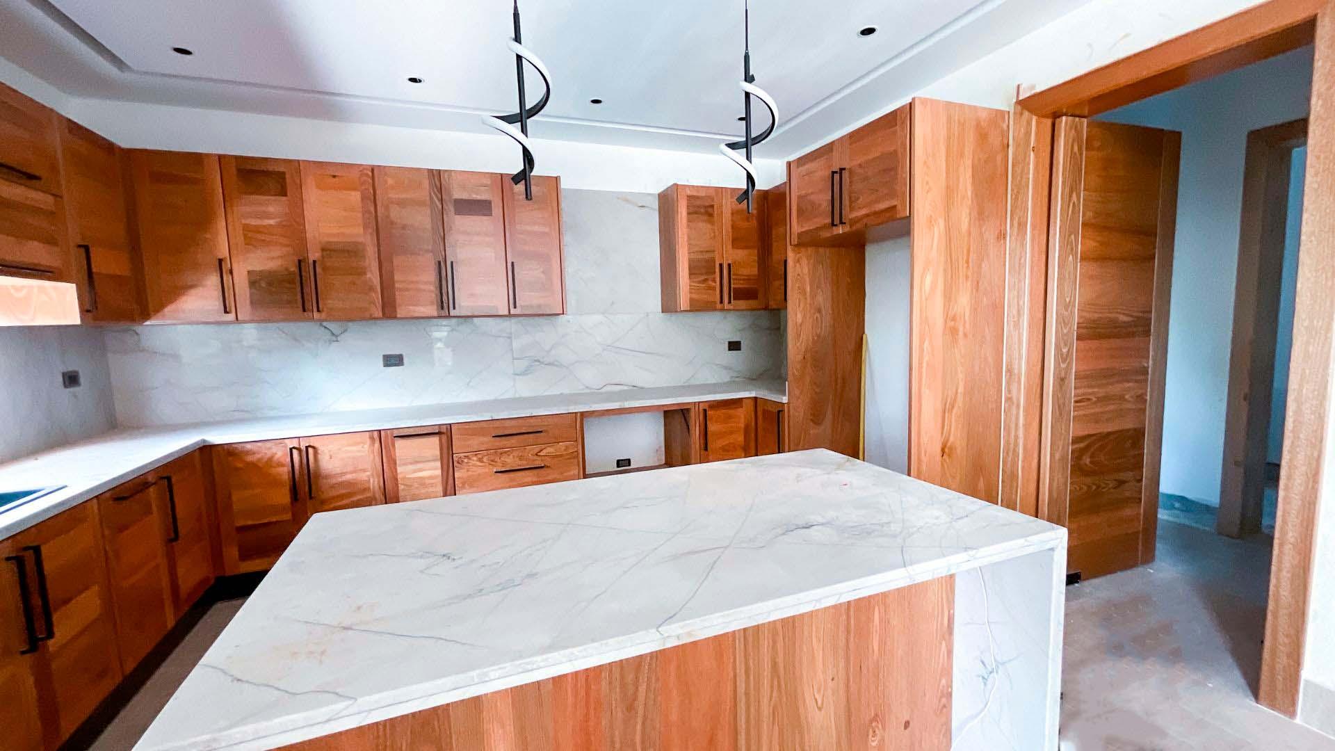 Mit 600 m² exquisit gestalteter Wohnfläche bietet diese zweistöckige Villa geräumige und moderne Innenräume. Die 4 Schlafzimmer, jedes mit eigenem Bad, bieten maximalen Komfort und Privatsphäre. Die offen gestalteten Wohnbereiche schaffen einen nahtlosen Übergang zwischen Innen- und Außenbereich und verfügen über raumhohe Fenster, die natürliches Licht und eine atemberaubende Aussicht bieten. Die Gourmet-Küche mit Frühstücksbar und separater warmer Küche ist perfekt für Kochbegeisterte. Coralina-Fußböden, hochwertige Zedernholzoberflächen und elegante Glastreppengeländer verleihen diesem luxuriösen Haus einen Hauch von Raffinesse.