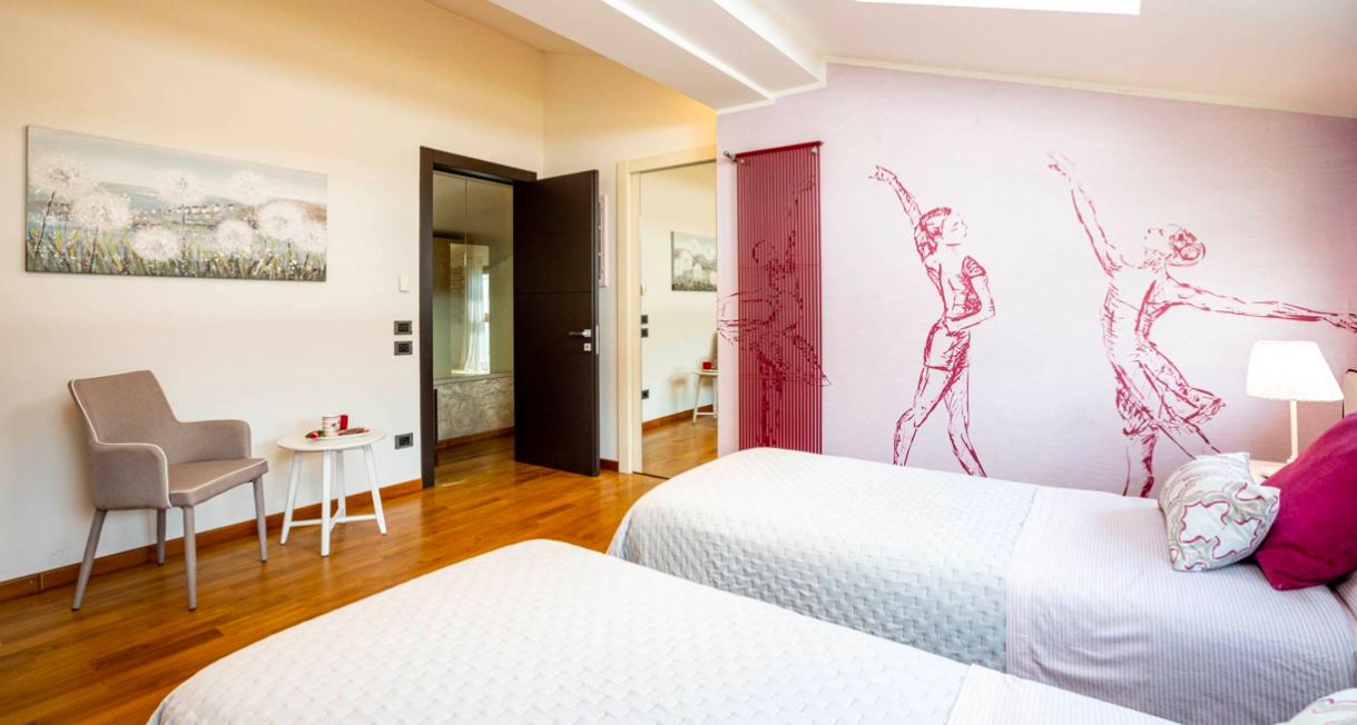 – Na piętrze zaprojektowano strefę nocną z dwiema głównymi sypialniami (jedna z łóżkiem king size), pokojem dwuosobowym oraz dwoma łazienkami. Każda sypialnia oferuje widok na ogród i basen.