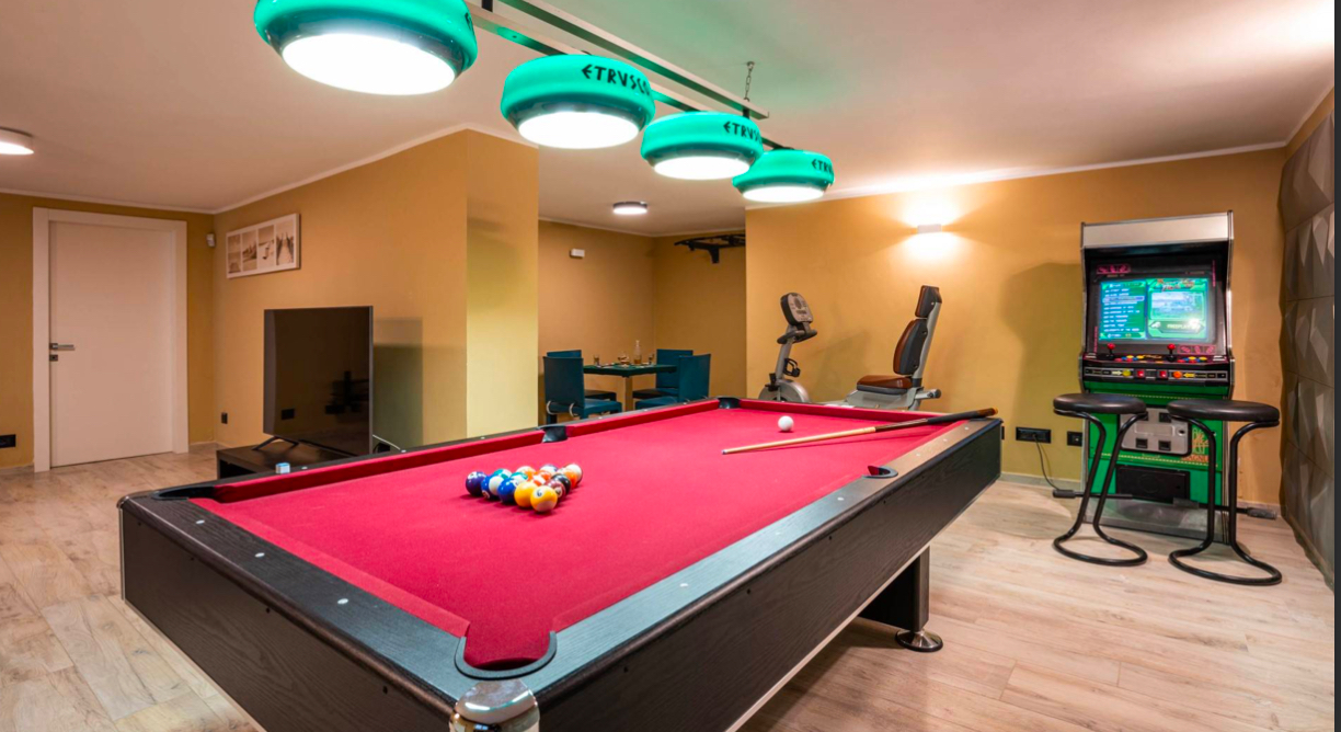 – W piwnicy znajduje się sala rozrywki z bilardem, stołem do gry w karty, urządzeniami Technogym oraz strefą relaksu z dużym telewizorem. Na tym poziomie znajduje się również niezależna suite z aneksem kuchennym, sypialnią i łazienką – idealna dla gości lub obsługi.