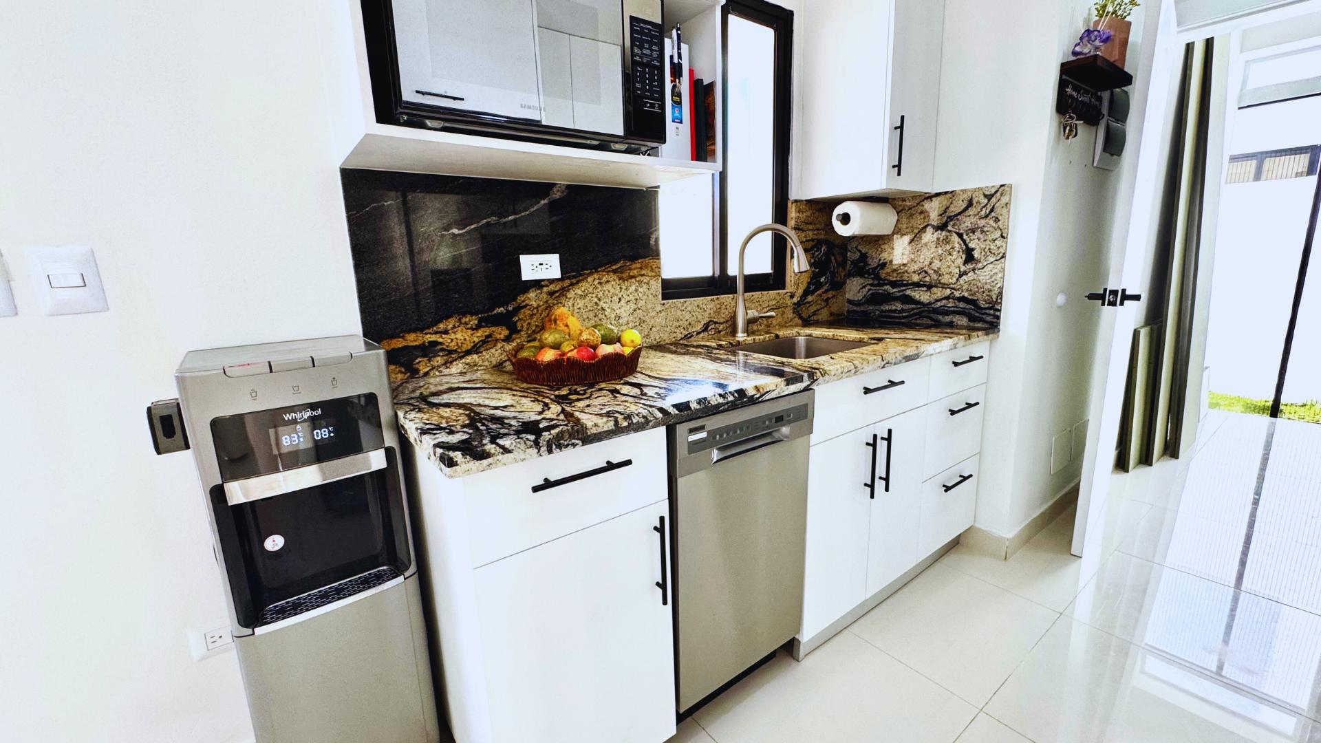 The 100-pound gas tank powers the burners, oven and dryer, ensuring efficiency at all times and saving electricity. The fridge is connected to a water bottle system, providing fresh drinking ice whenever needed. It also includes a dishwasher, making daily life in this modern villa even more convenient. This property offers many advantages, as it was designed by the owners for their own enjoyment, making it an excellent choice for those looking for quality and comfort in one of the Caribbean’s most sought-after destinations.
