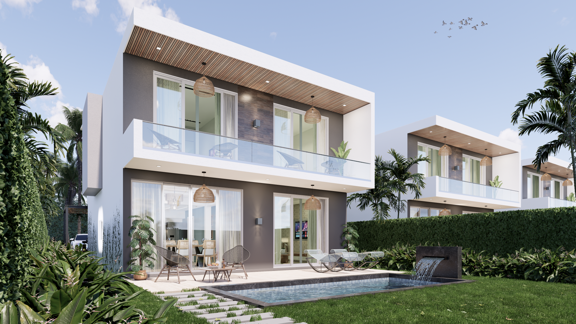 Step into modern tropical living with these stunning 3-bedroom villas located in the heart of Vista Cana, Bávaro—where luxury, comfort, and functionality meet. With 142 square meters of thoughtfully designed space, these villas offer multiple terraces, clean architectural lines, and a fresh, modern aesthetic that creates an ideal environment for relaxation and well-being. Natural light pours in throughout the day, enhancing the serene and airy atmosphere of each space.