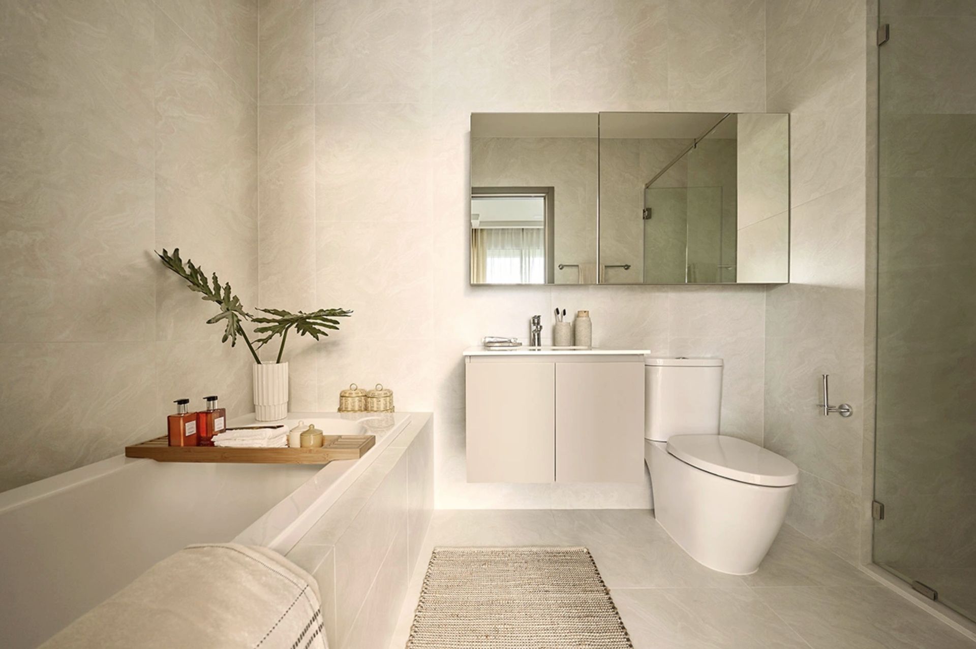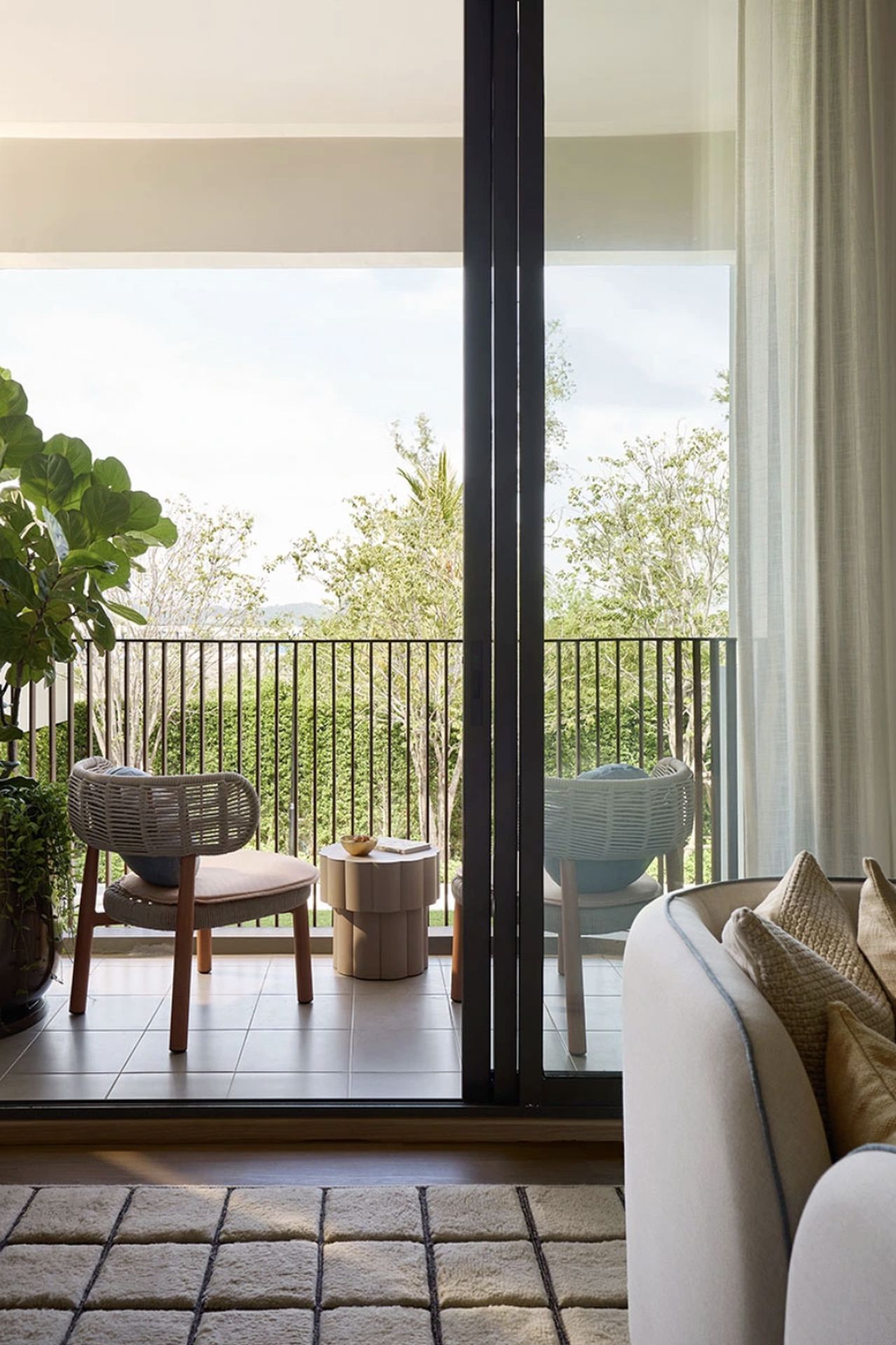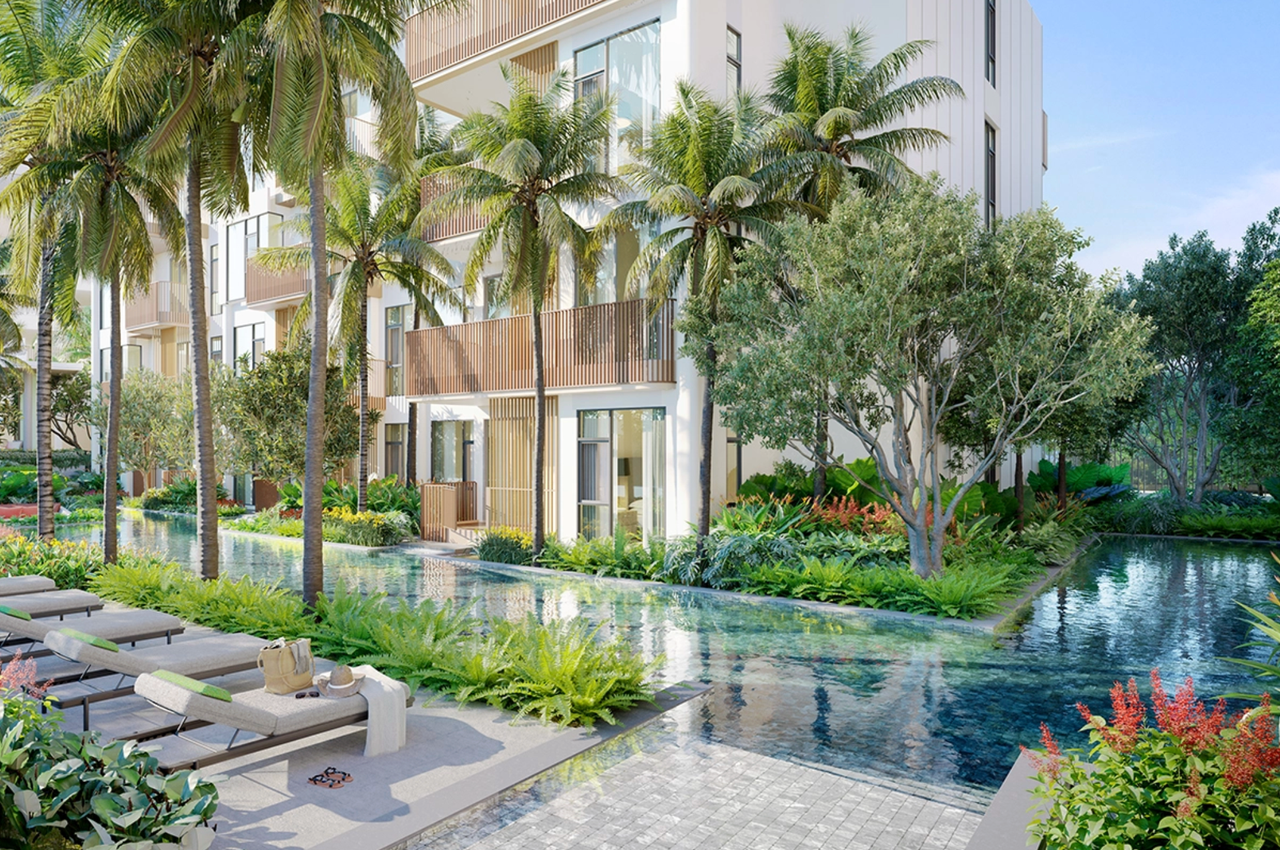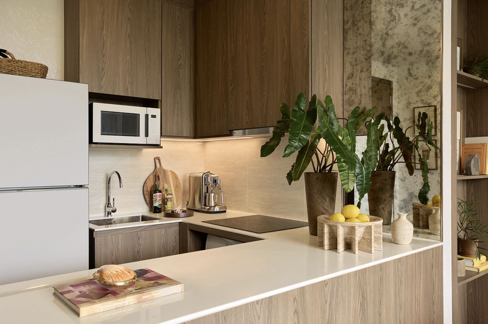 The 1-bedroom apartment of 41.5 sq. m. is ideal for individual living or renting. The spacious living room is combined with the kitchen, and the balcony overlooks the pool or tropical garden. The interior is designed in a neutral natural palette, creating an atmosphere of coziness and relaxation.