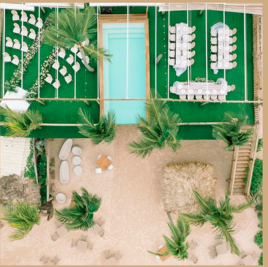 Strefy relaksu otoczone tropikalną roślinnością