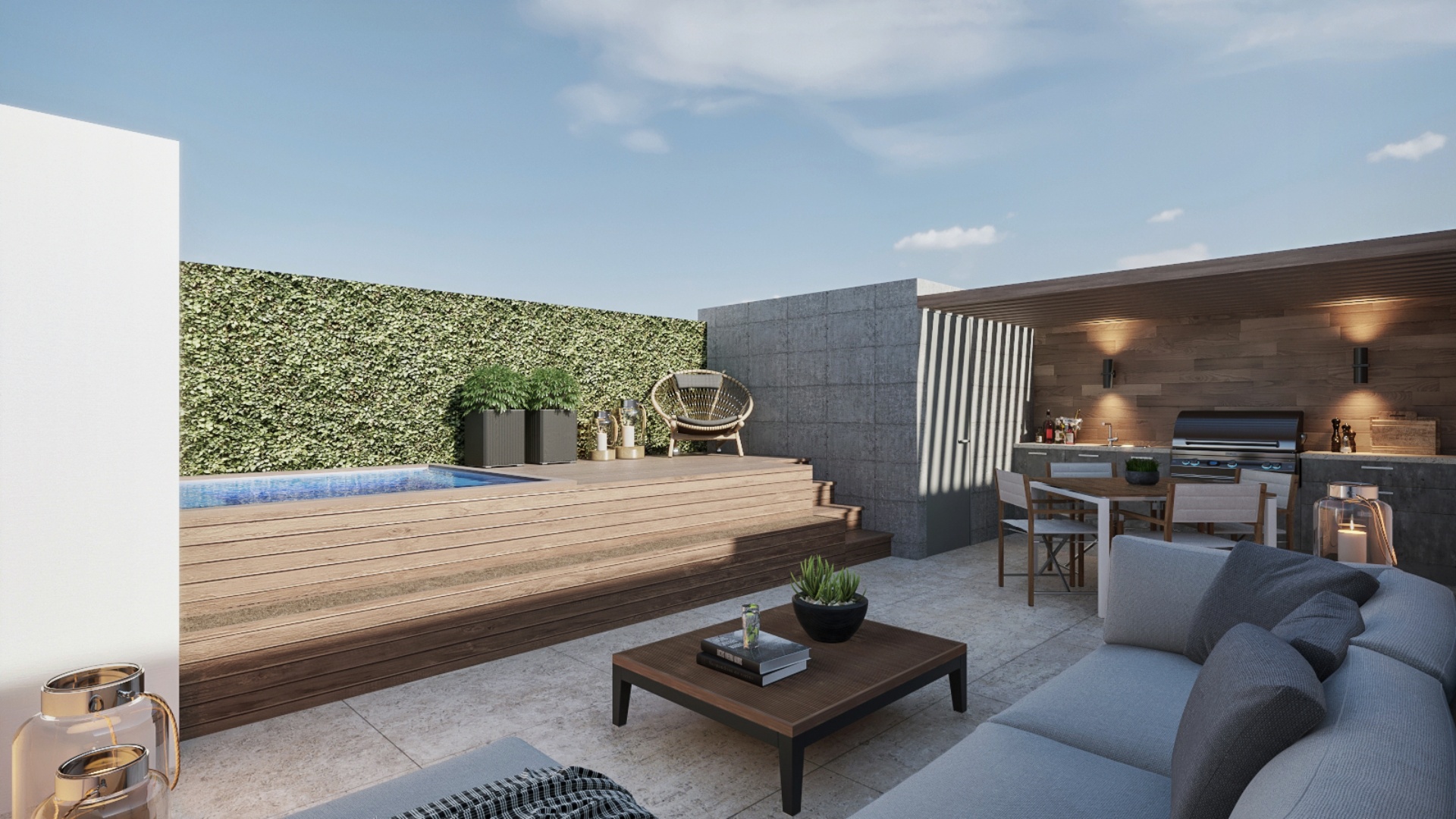 This exclusive community will feature three- and four-level buildings with rooftop terraces and an elevator in each tower, designed for comfort and convenience. Amenities include a social area, adult and children’s pools, a fully equipped outdoor gym, a multipurpose room, a kids’ play area, visitor parking, and a gated entrance with access control for enhanced security.