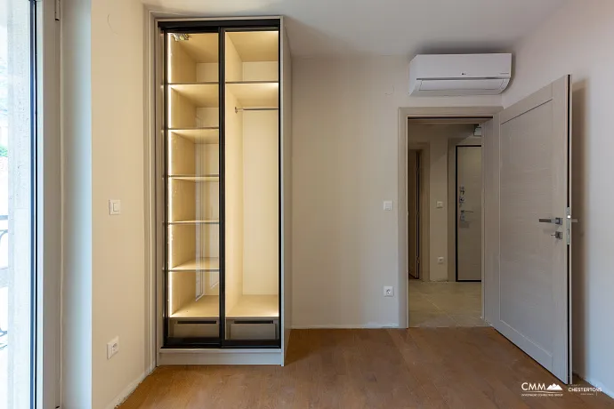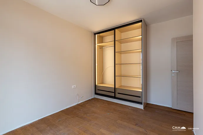 The apartment has been finished to a modern standard — it has a new kitchen, a refreshed bathroom, and air conditioning. It is sold unfurnished, giving the new owner complete freedom to arrange the interior according to their own needs and style.