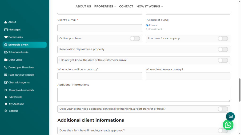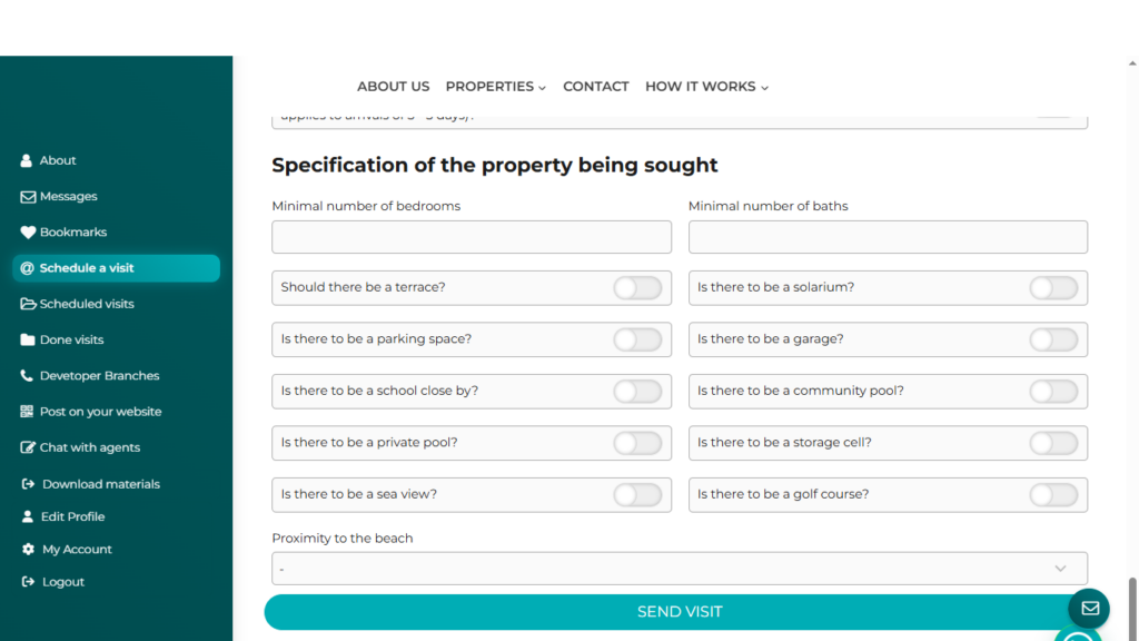 When everything is in order, it’s time to plan the client’s visit! The planning starts by going to the SCHEDULE A VISIT section and selecting a property from the client’s folder.
