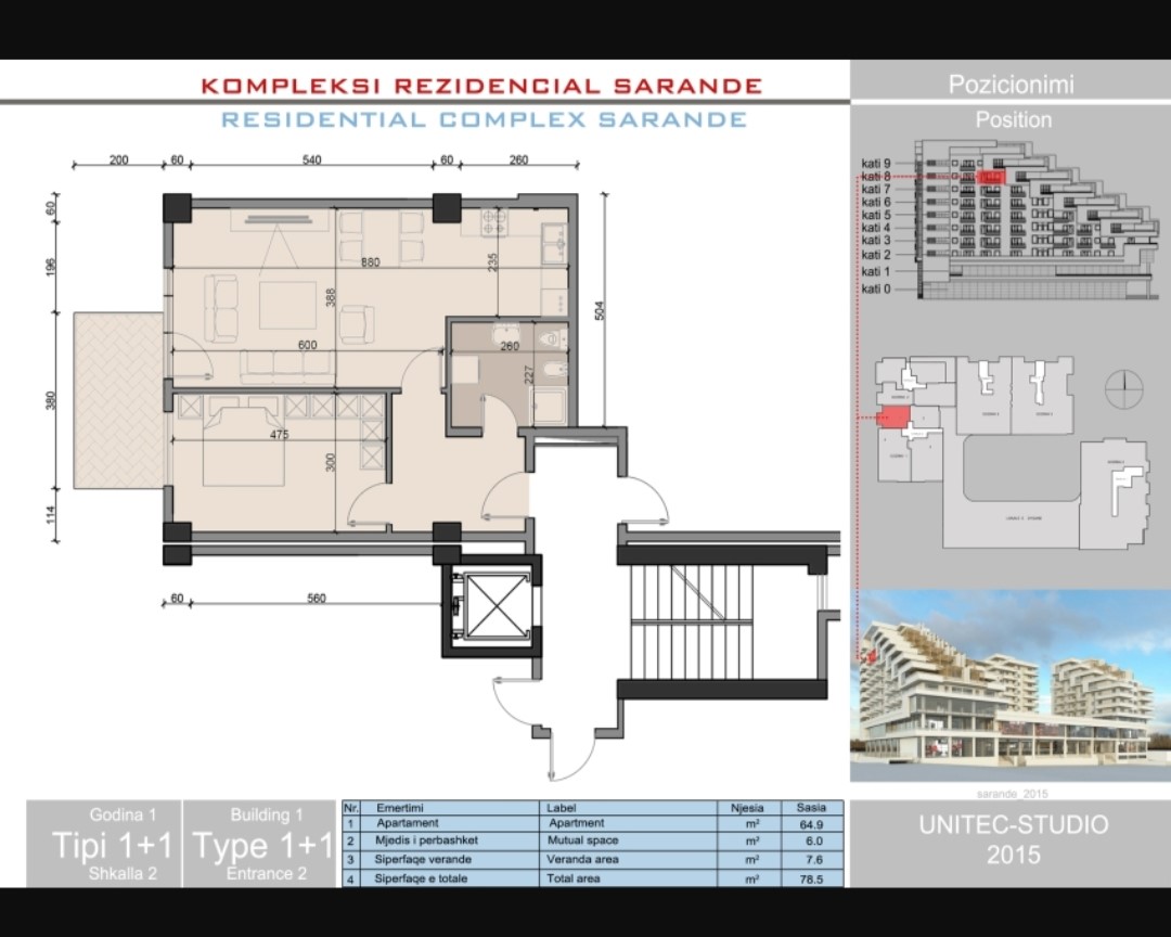 Oferujemy na sprzedaż wyjątkowy apartament w nowoczesnym kompleksie Saranda Taraces, położonym w prestiżowej lokalizacji tuż przy plaży w Sarandzie. Kompleks oferuje komfortowe warunki do zamieszkania oraz inwestycji – w budynku znajdują się m.in. kawiarnia i piekarnia, a w pobliżu rozciąga się malownicza nadmorska promenada.