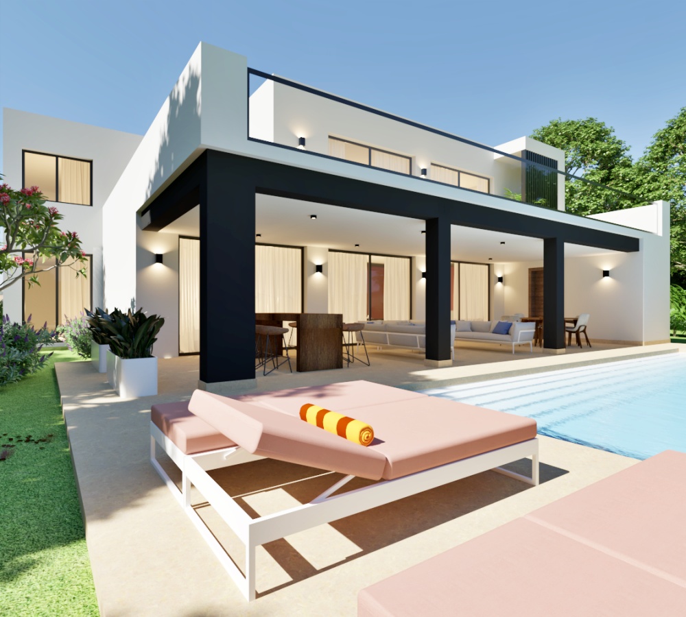 The villa is designed for modern living, with large social areas perfect for entertaining guests. Enjoy the refreshing swimming pool on hot summer days, or unwind in the expansive gardens surrounded by lush greenery.