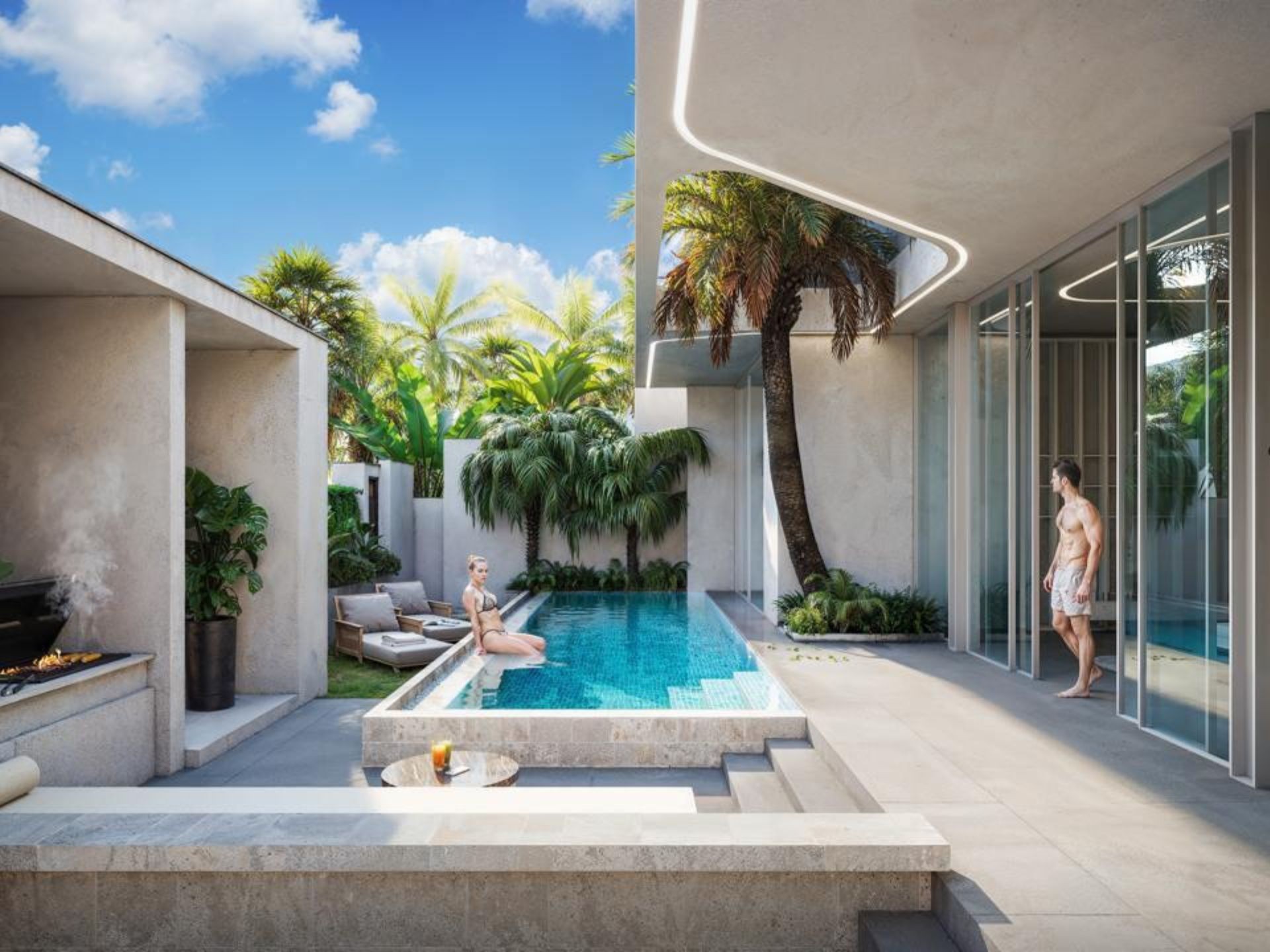 Profesjonalnie zaprojektowany krajobraz z tropikalnymi roślinami