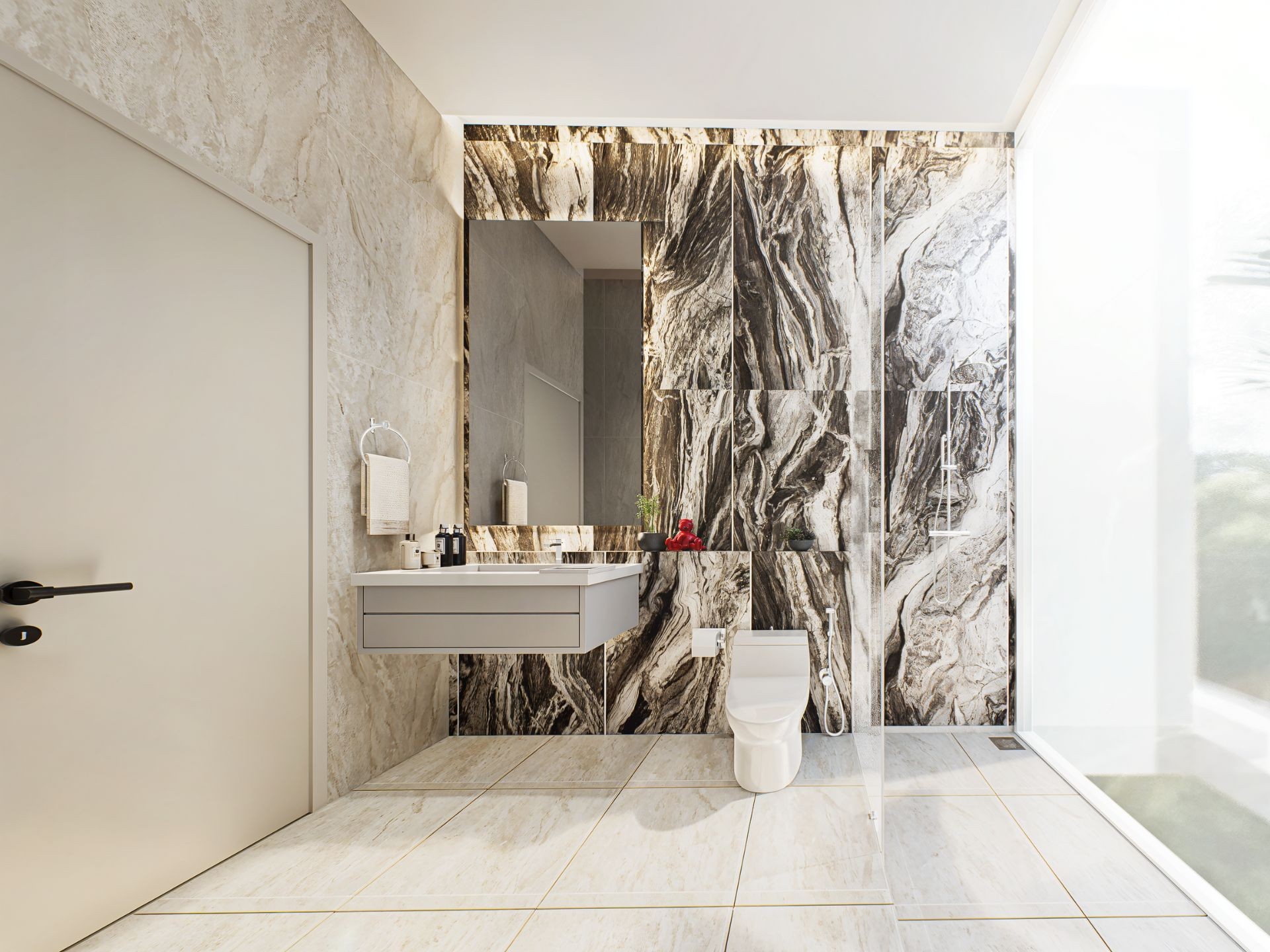 Profesjonalnie zaprojektowany krajobraz z tropikalnymi roślinami