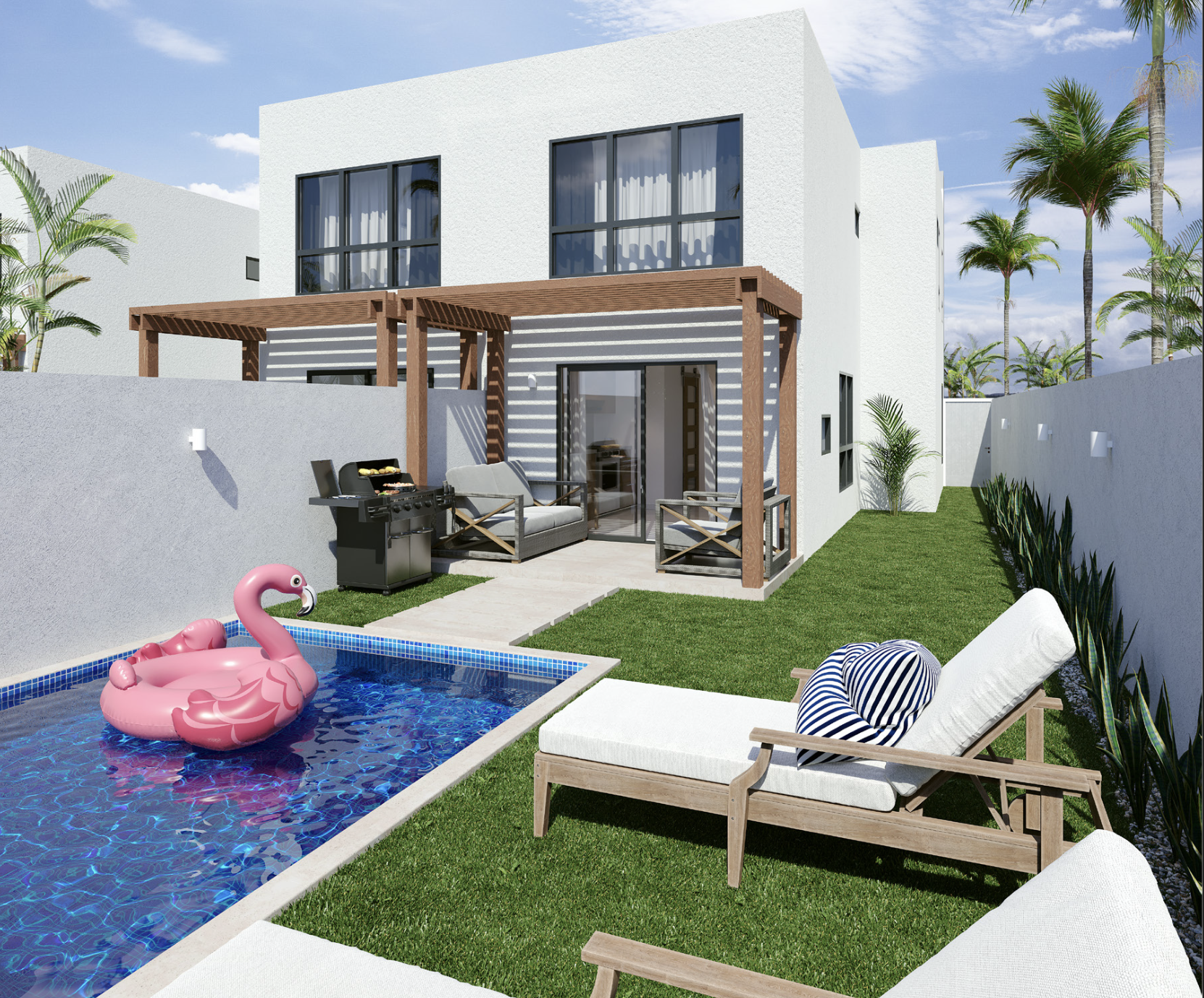 Cozy 2-bedroom townhouses with POOL INCLUDED, located in a quite gated community, only 2 minutes drive to the downtown area where you can find all the restaurants, cafés, banks, gyms, supermarkets, cinema, attractions and more.