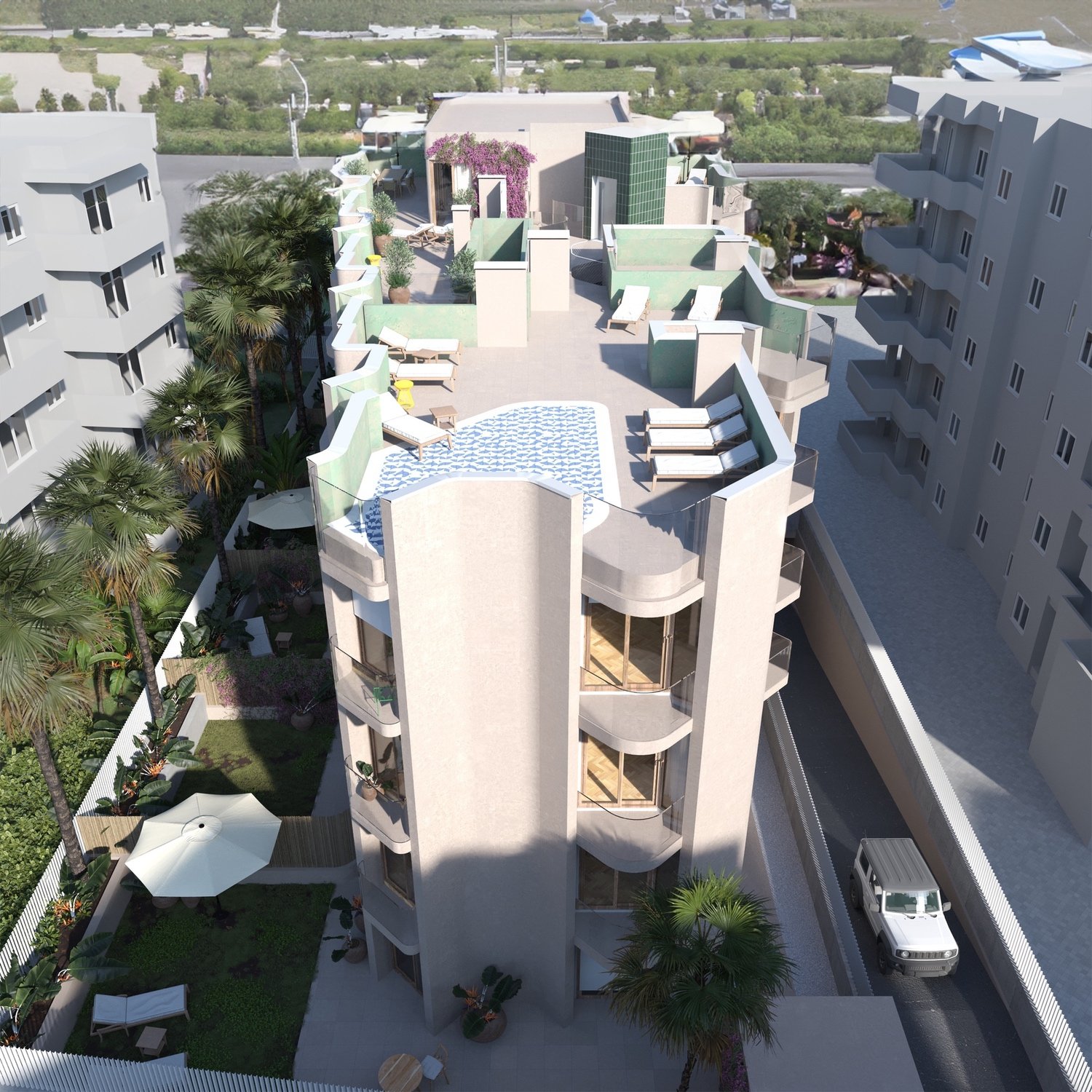 ✔ Бассейн на крыше и солярий, общий сад с тропическими растениями