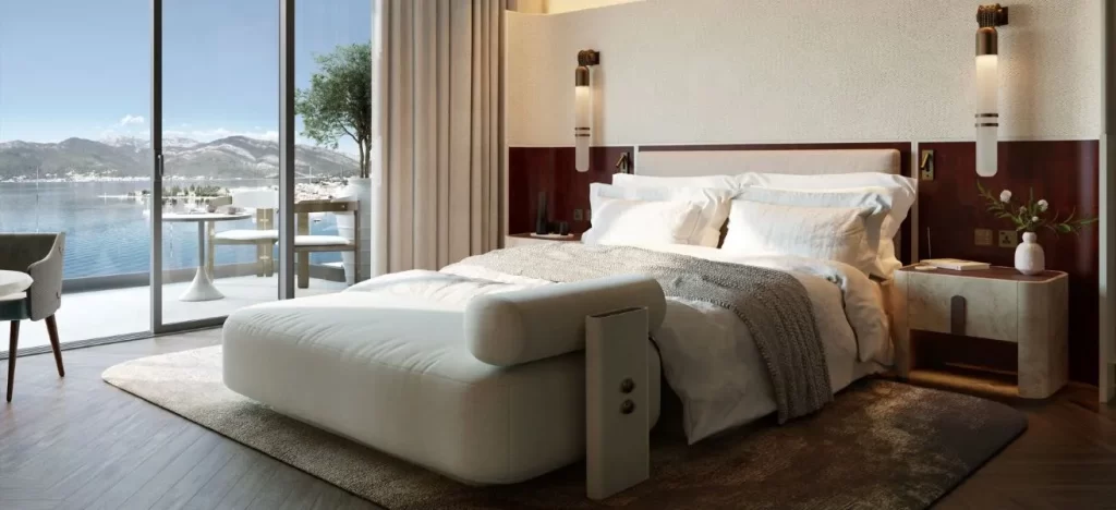 Квартиры предлагают панорамный вид на залив Бока и пристань для яхт Porto Montenegro, просторные террасы, высокие стандарты отделки и доступ к ряду премиальных удобств. Владельцы имеют доступ к частным бассейнам, пляжным клубам, тренажерному залу, услугам консьержа, а также к преимуществам, связанным с гостиничной программой управления недвижимостью.