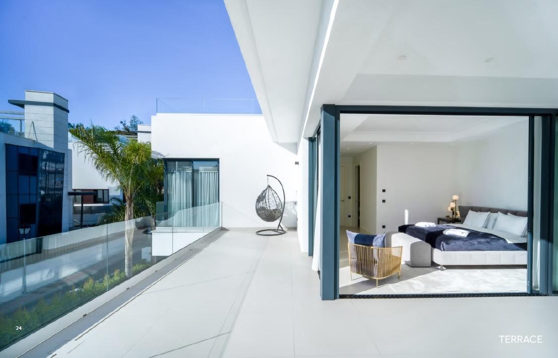 Роскошная современная вилла в Марбелье Золотая Миля – всего в нескольких шагах от пляжа Эксклюзивное местоположение: Марбелья Золотая Миля – Рио Верде Эта потрясающая вилла нового строительства расположена в одном из самых престижных и востребованных жилых районов Марбельи, Золотой Миле, в безопасной и спокойной урбанизации Рио Верде. Всего в 100 метрах от пляжа и всего в 3 минутах ходьбы от эксклюзивной пристани для яхт Пуэрто Банус, вилла предлагает непревзойденное расположение в окружении роскоши, комфорта и природной красоты. Золотая миля Марбельи славится своей прекрасной атмосферой, ресторанами высокого класса, дизайнерскими бутиками и оживленной ночной жизнью, что делает ее исключительным выбором для отдыха или постоянного проживания семьи.Просторная современная вилла с исключительным дизайномЭта современная вилла может похвастаться современной архитектурой, отделкой высшего качества и дизайном, который максимально увеличивает пространство и естественное освещение. В доме 4 спальни, 5 ванных комнат, большие крытые и открытые террасы на каждом этаже – здесь есть все, чтобы развлечься, позагорать или насладиться семейными посиделками. Кроме того, в подвале есть возможность переоборудовать дополнительное пространство в пятую спальню, что обеспечивает еще большую гибкость.Роскошные удобства для максимального комфорта Вилла полностью оборудована высококлассными удобствами для роскошного и комфортного образа жизни, включая:Частный бассейн, идеальный для летнего отдыха Полностью оборудованная современная кухня открытого плана Игровая комната и кинозал для развлечений Хранение, прачечная и подсобное помещение для дополнительного удобства Солярий с захватывающим видом на море В доме также есть полы с подогревом, кондиционер, камин и двойное остекление для круглогодичного комфорта.Отличное расположение рядом с основными достопримечательностями Пляж: 100 метров от отеля Пуэрто Банус Марина: 3 минуты ходьбы (около 0,3 км) Поля для гольфа: Многочисленные высококлассные поля для гольфа в радиусе 5-10 км Торговые центры: El Corte Inglés и элитные магазины всего в 1 км от отеля Аэропорт Малаги: Приблизительно 57 км (45 минут на машине) Старый город Марбельи: 6 км Непревзойденное расположение Золотой Мили предлагает потрясающие виды на Средиземное море и близость к природным красотам, включая близлежащий горный хребет Сьерра Бланка, создавая спокойную и живописную обстановку.Вилла вашей мечты ждетЭта уникальная вилла на Золотой Миле в Марбелье – идеальное сочетание роскоши, удобства и первоклассного расположения. Если вы ищете дом для семьи или место для отдыха, эта вилла предлагает все необходимое для изысканного и комфортного образа жизни. Свяжитесь с нами сегодня, чтобы запланировать визит и сделать этот дом мечты своим!