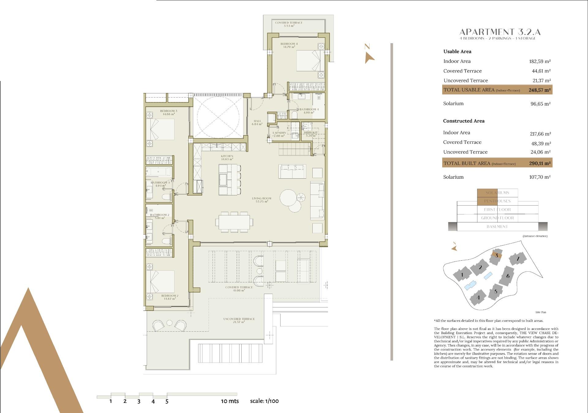 Проект состоит из семи элегантных зданий, каждое из которых имеет три этажа, тщательно расположенных так, чтобы максимально использовать вид на море и естественное освещение. Апартаменты доступны в конфигурациях с 2, 3 и 4 спальнями, с прекрасно оформленными интерьерами и высококачественной отделкой. Квартиры на первом этаже располагают просторными частными садами, а пентхаусы оснащены частными соляриями и бассейнами. Все квартиры оборудованы современными кухнями Modulnova, сочетающими в себе стиль и функциональность.