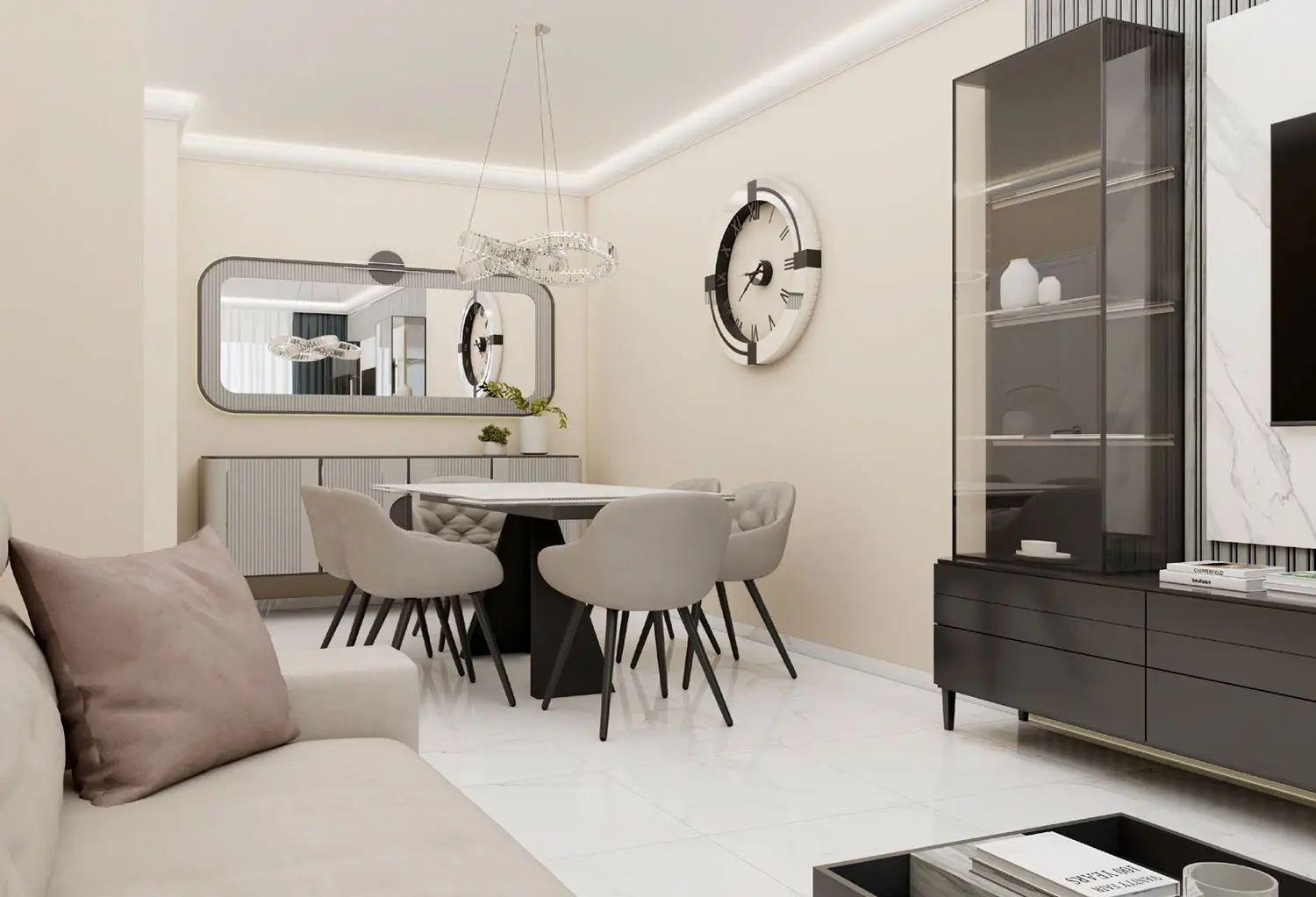 - просторная гостиная с обеденной зоной