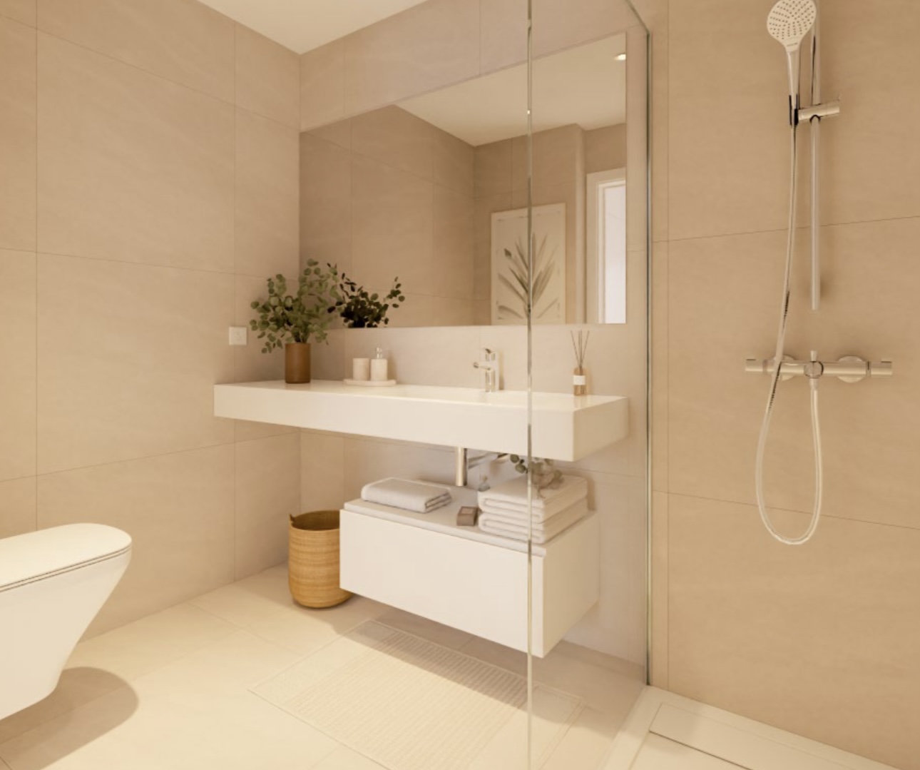 - Ванные комнаты отделаны элегантной керамикой, оборудованы душем с термостатом и светодиодной подсветкой