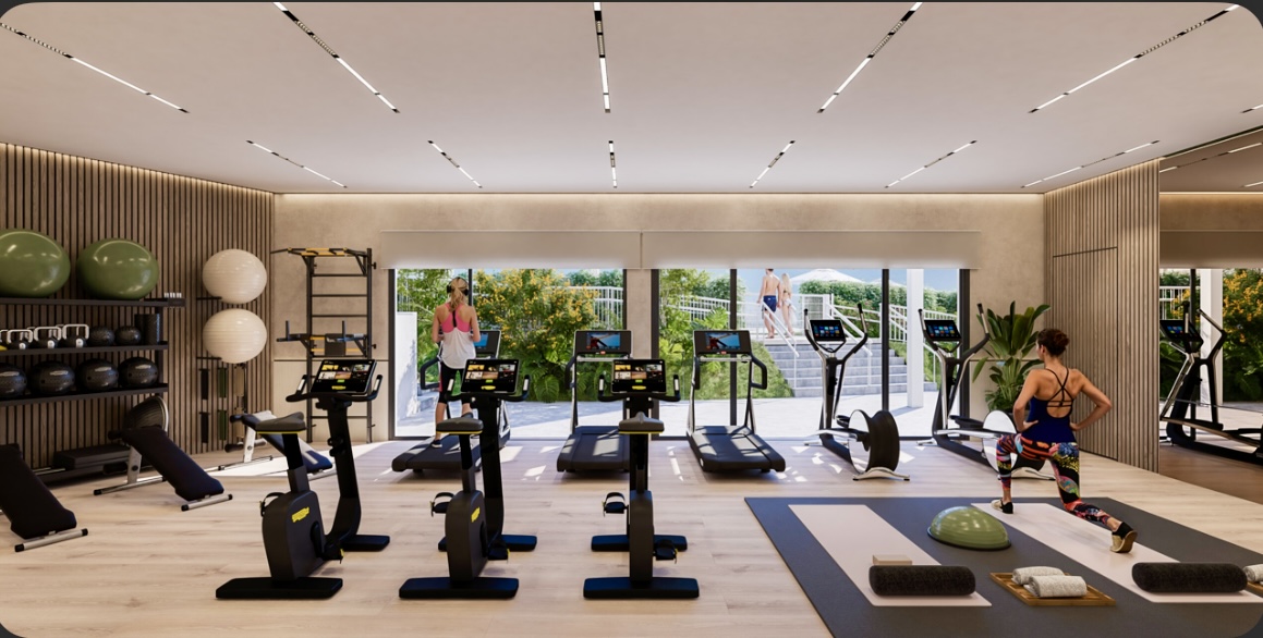 Крытая социальная гостиная, идеально подходящая для изысканных обедов с друзьями или в качестве рабочего места. Для любителей водных развлечений комплекс предлагает: бассейны в тропическом стиле с выходом на пляж. Бассейн с подогревом, детский бассейн и джакузи с подогревом. Любители фитнеса могут насладиться: крытым и открытым тренажерным залом с калистеническим кругом.